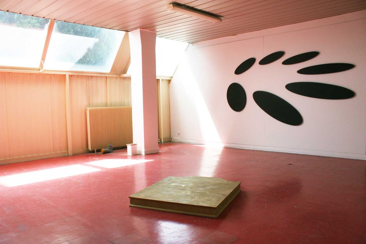 Estrador, 2011. Bois, peinture dorée, 15 x 100 x 100 cm. Vue d’atelier