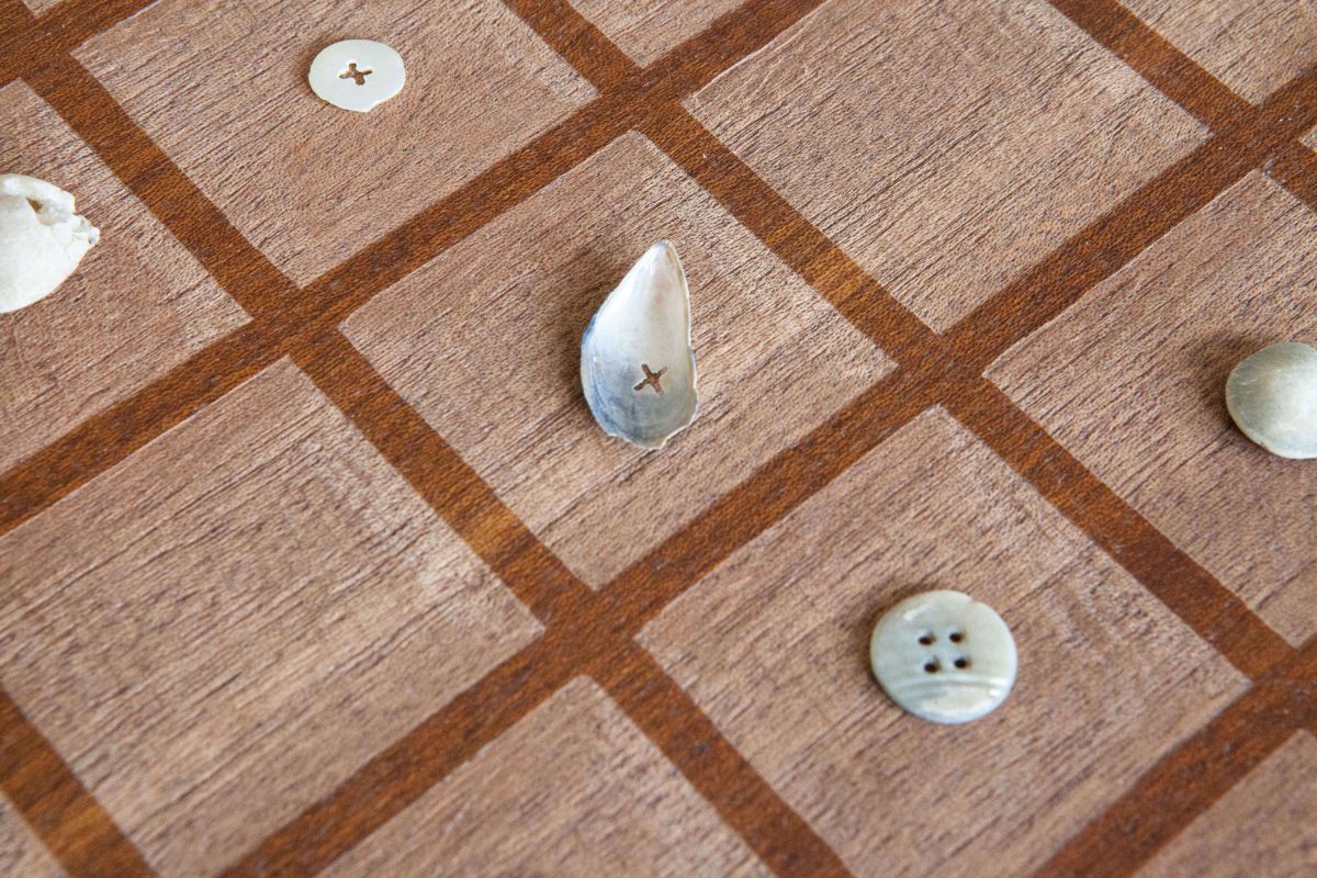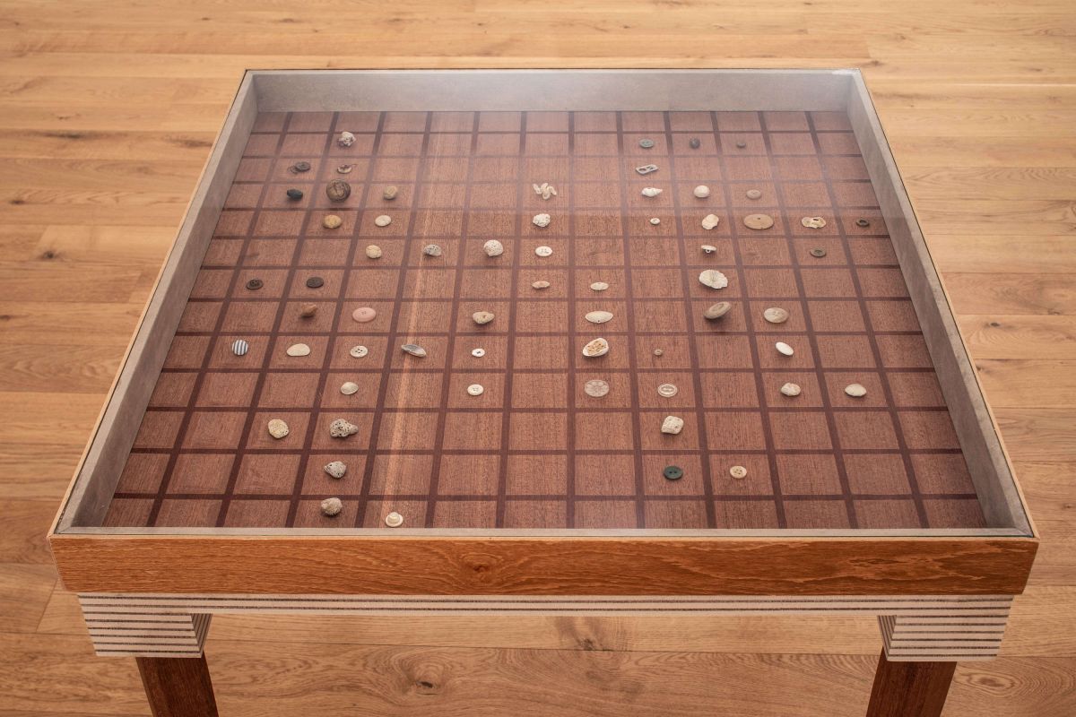 Bois, verre, boutons usés et divers objets récupérés sur le rivage, 75 x 80 x 78 cm