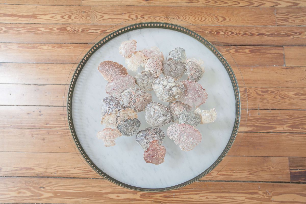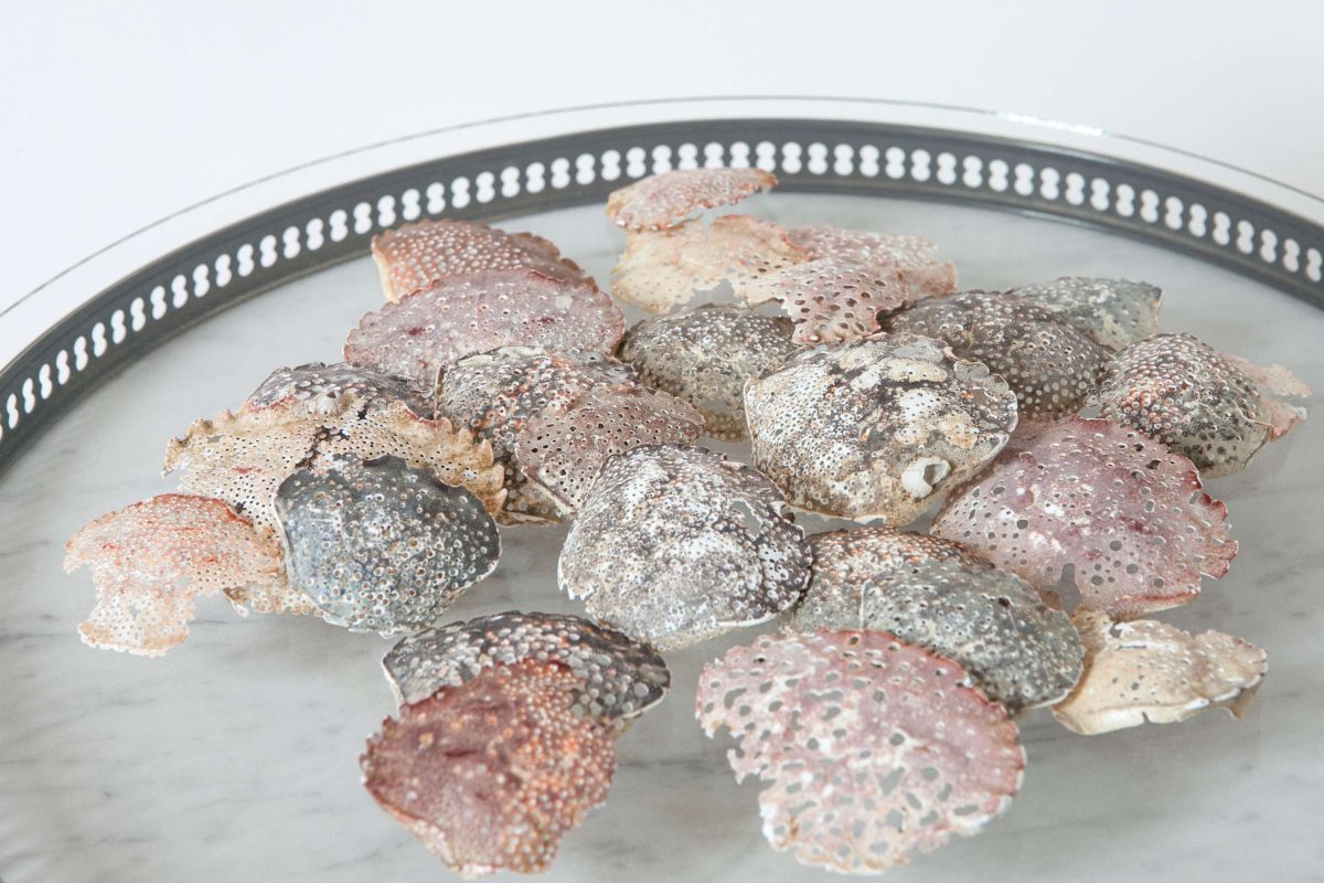 Carapaces de crabe, verre, guéridon, 35 x 52 cm