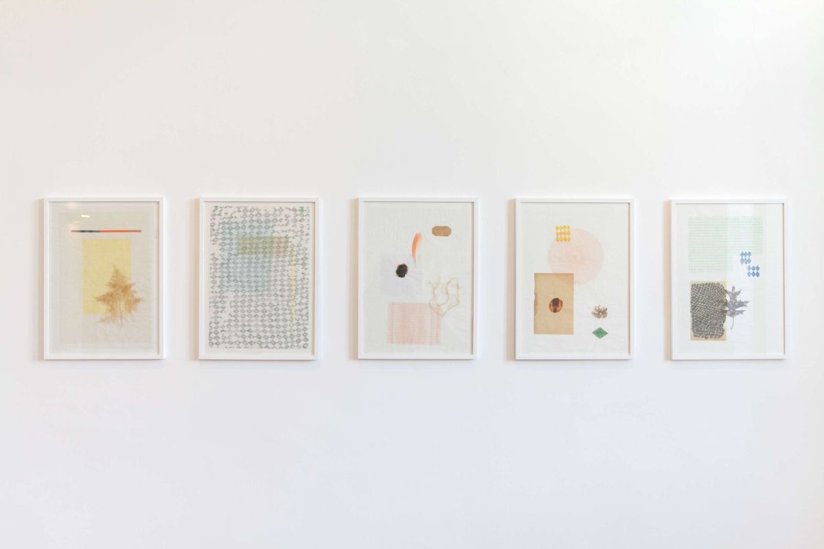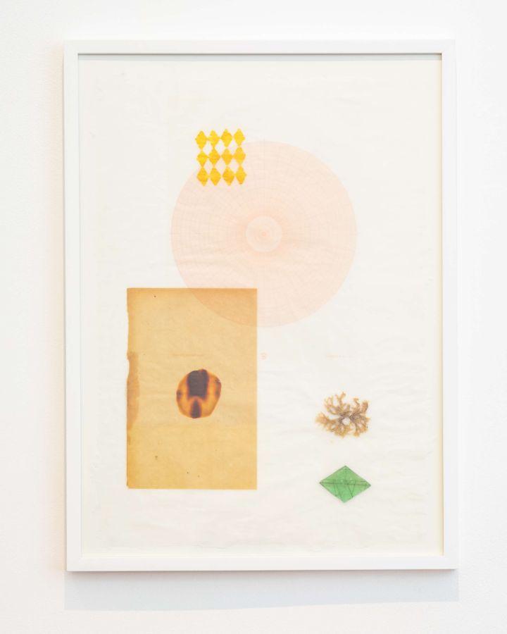 Papier millimétré, lichen, acrylique, adhésif, plastique, papier de soie et paraffine, 50 x 70 cm