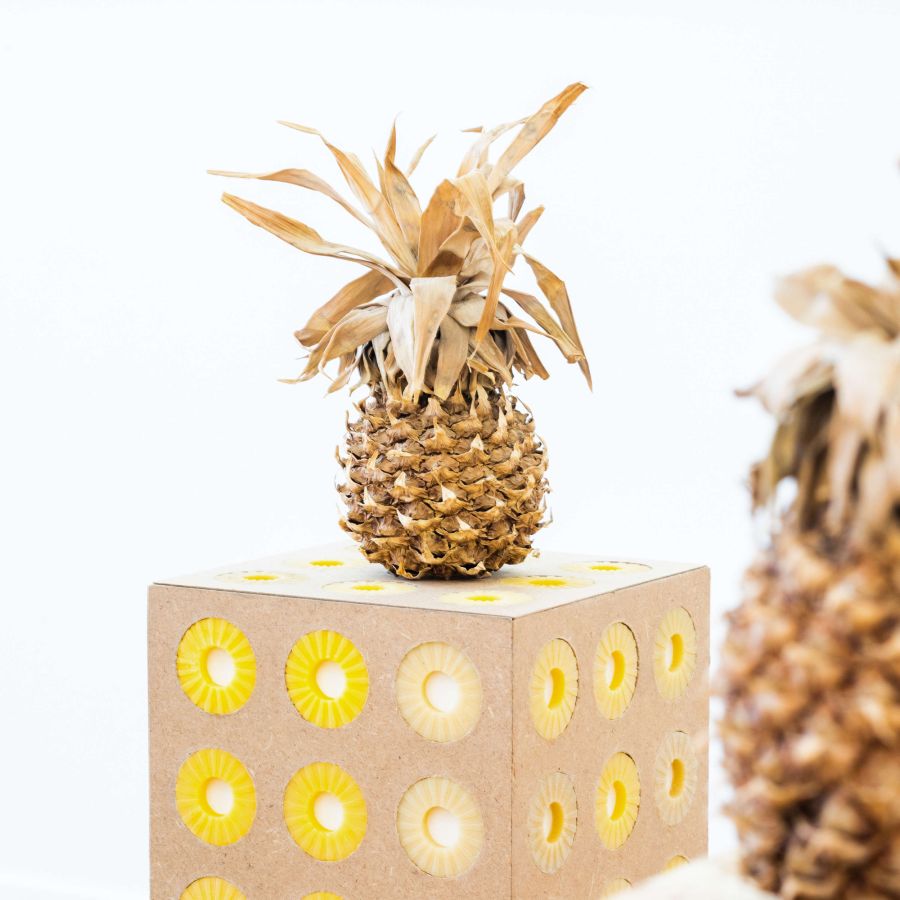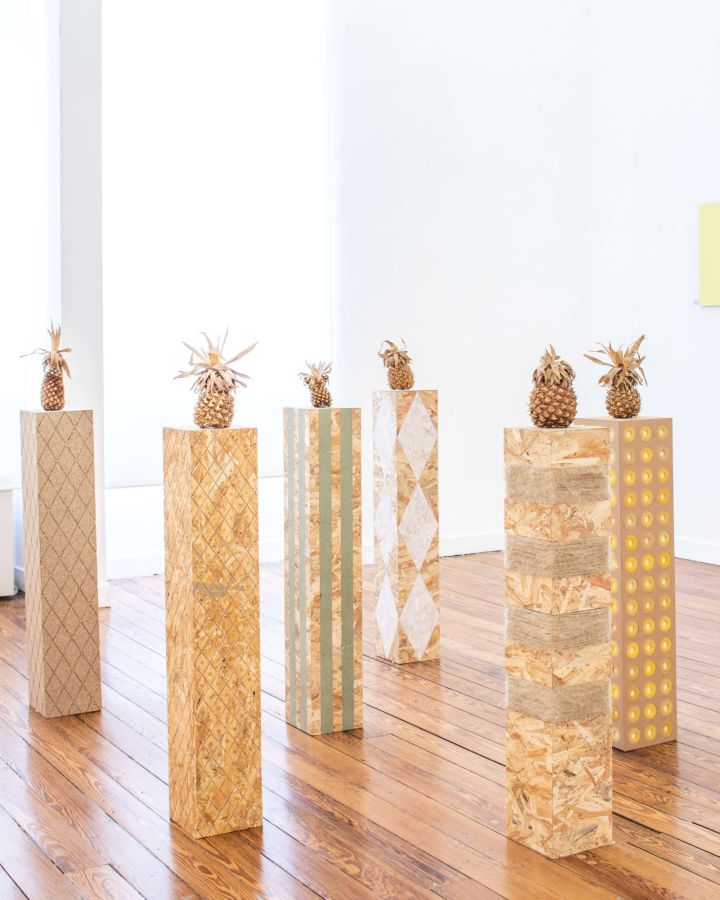 Marbrée, 2019, Ananas desséché, bois et enduit, 17 x 17 x 96cm