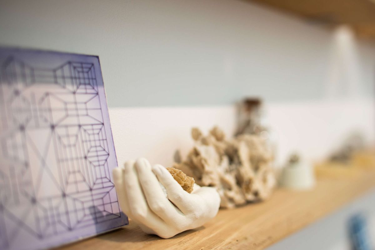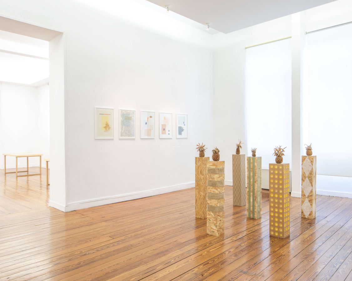 Alvéole, 2017, Ananas desséché, bois et cire d'abeille, 17 x 17 x 94,5cm