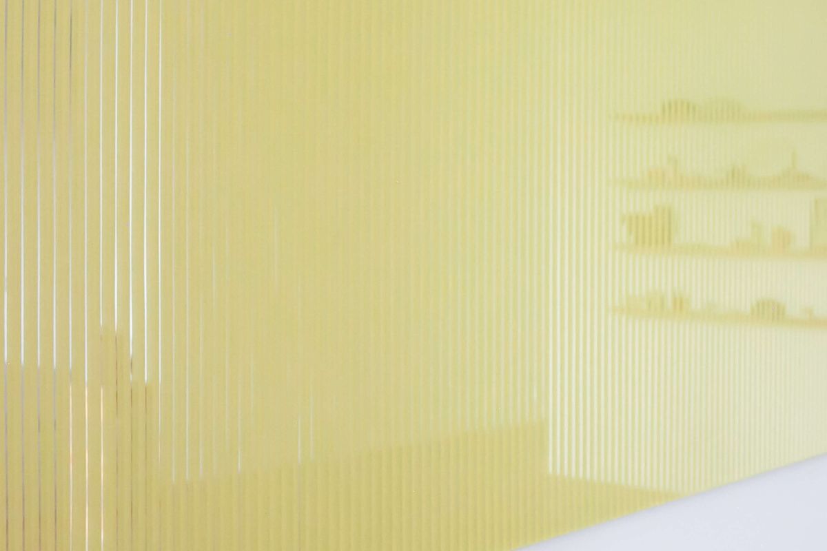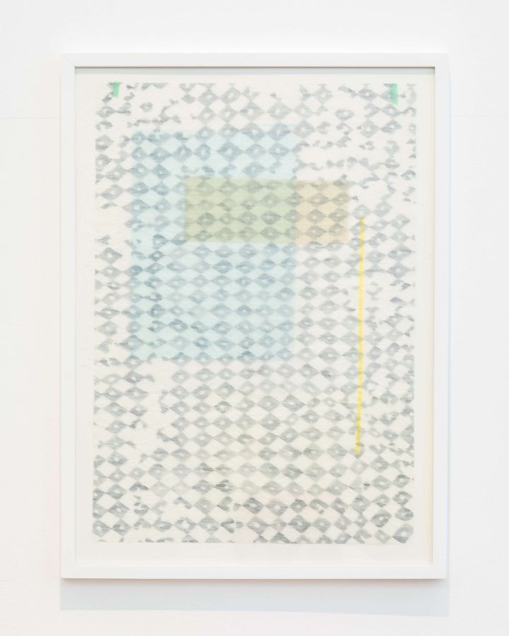 Papier millimétré, acrylique, adhésif, papier de soie et paraffine, 50 x 70 cm