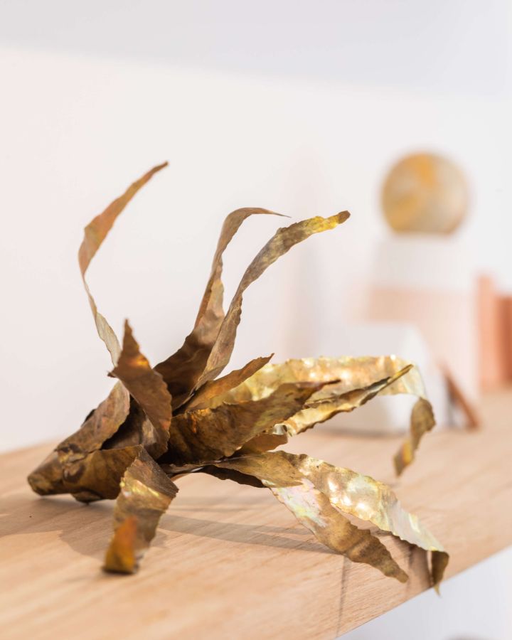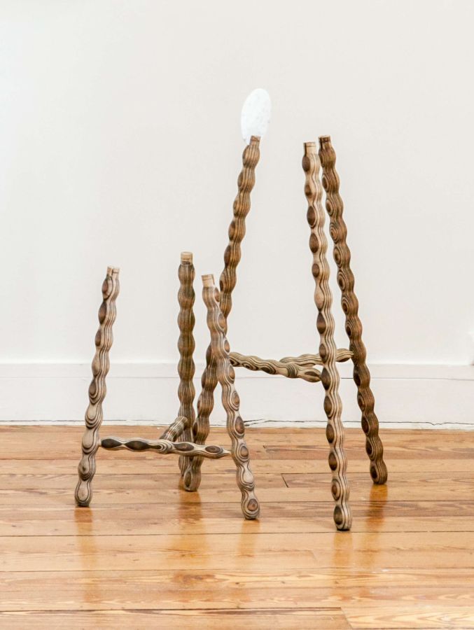 Rondelle, 2019, Ananas desséché, bois et cire d'abeille, 17 x 17 x 96cm
