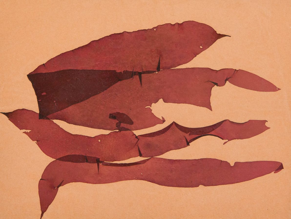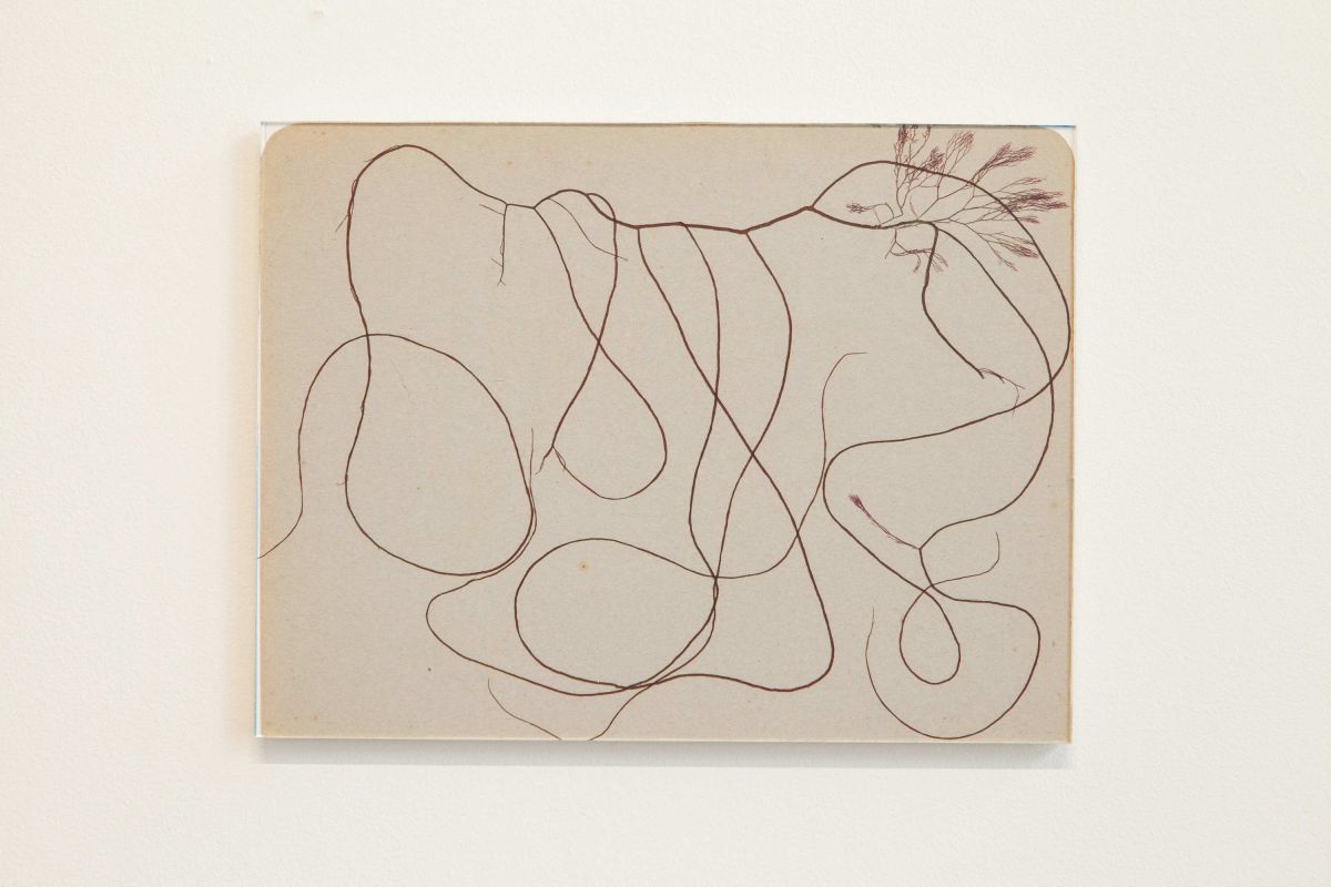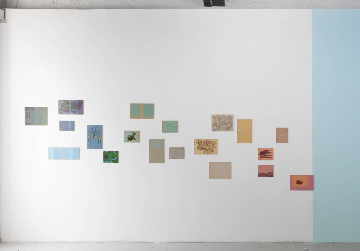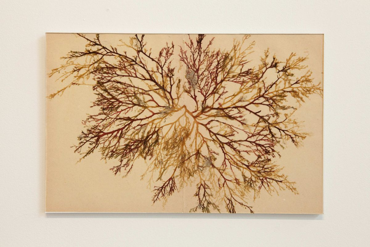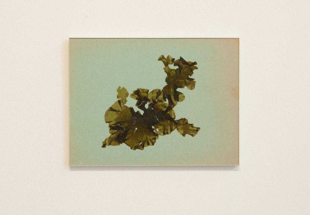 L’heure de sieste est à ce titre exemplaire. Cet ensemble d’alguiers emploie une technique de conservation des algues que l’artiste découvre lors de sa résidence à la Station biologique de Roscoff. Marquée par la vaste collection de spécimens de ce centre, et suivant les conseils de chercheurs qui y travaillent pour ce qui est de la préparation, l’artiste développe sur ces planches un travail autour de la ligne et de la couleur, presque pictural. Disposées de façon plus ou moins aléatoires sur les couvertures d’anciens carnets, des algues flottent sur des teintes passées, délavées, évoquant parfois des paysages marins ou quelques formes oniriques.