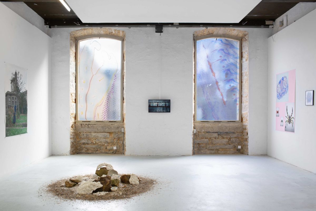 L’installation Riftia pachyptila répond quant à elle plus directement à la fascination de l’artiste pour certaines images scientifiques. Empruntées au fonds du Dr. Ann Andersen à la Station Biologique de Roscoff, et réalisées entre 1996 et 1998, deux vues microscopiques d’un ver abyssal de l’Océan Pacifique sont fortement agrandies. Tirées sur un support translucide puis disposées sur les fenêtres, elles acquièrent une dimension picturale et prennent des allures de vitraux d’église.