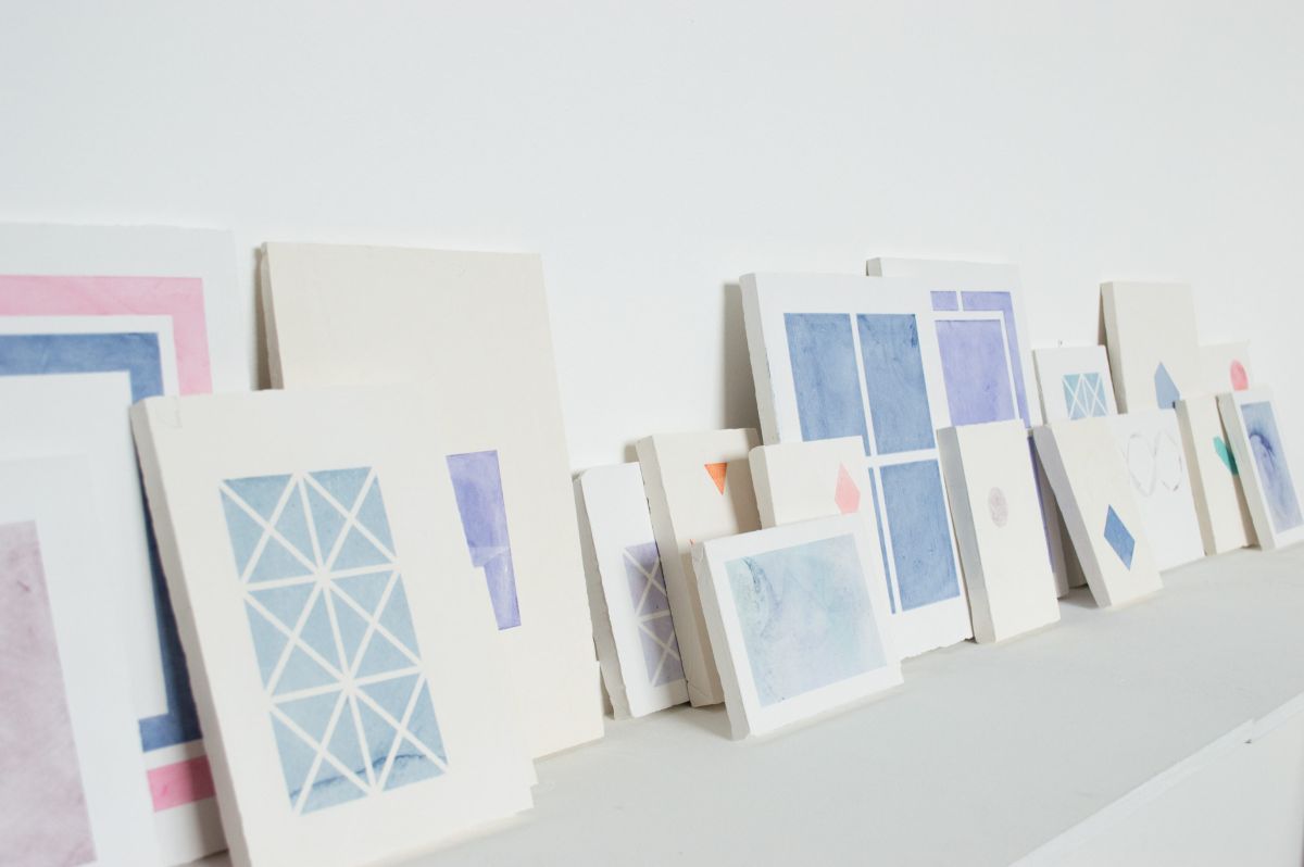 Dérivés des techniques de fresque et d’impression, ces gravures sur plâtre fixent les formes dans la masse. La couleur est Imbibée puis figée comme un fossile sur la surface lisse et mate.