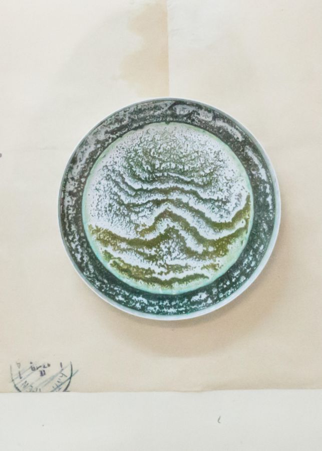 Fin de pot, 2014, détail, technique mixte sur plastique, 10 cm de diamètre