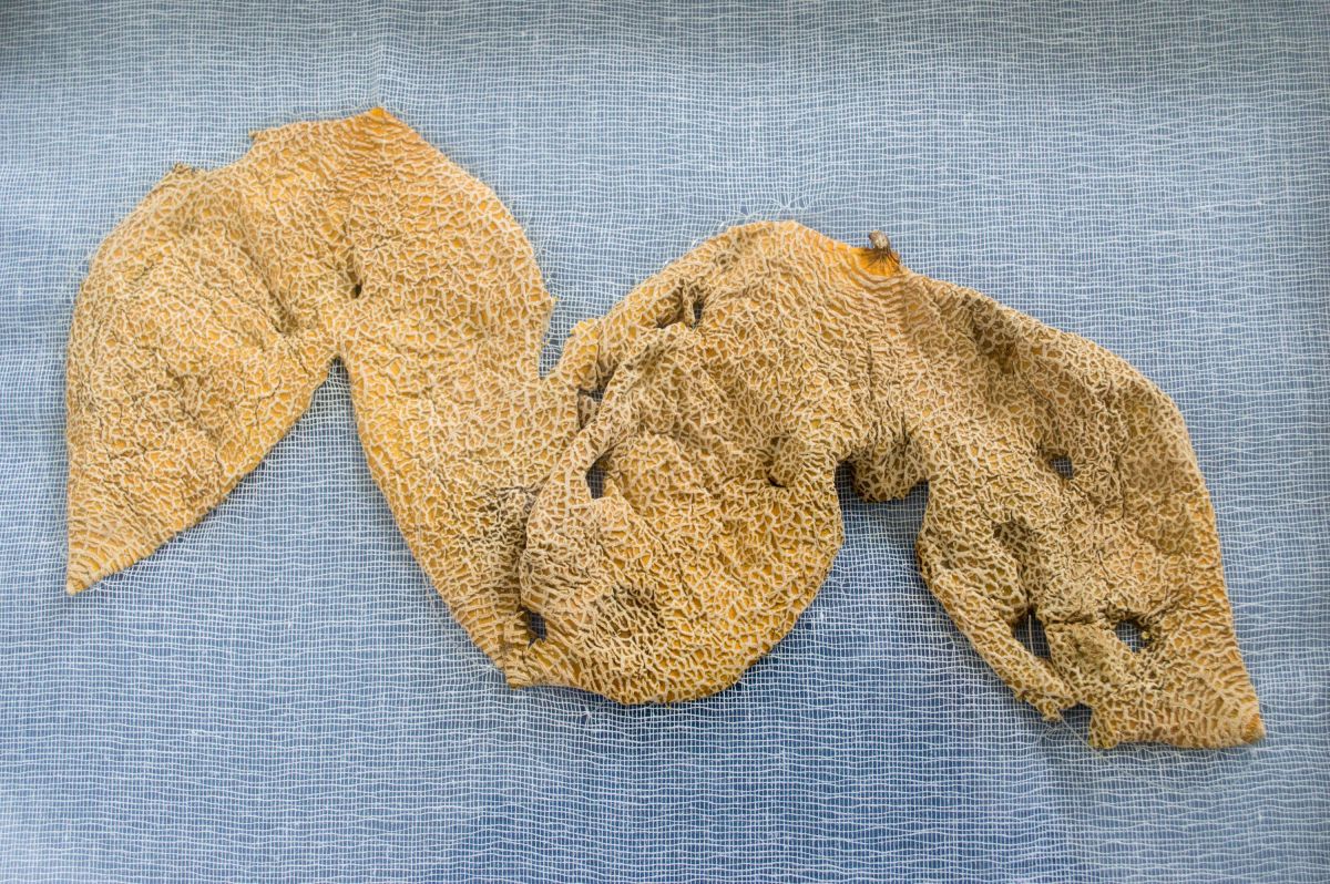 2015, détail, peau de melon desséchée et tissu, dimensions variables