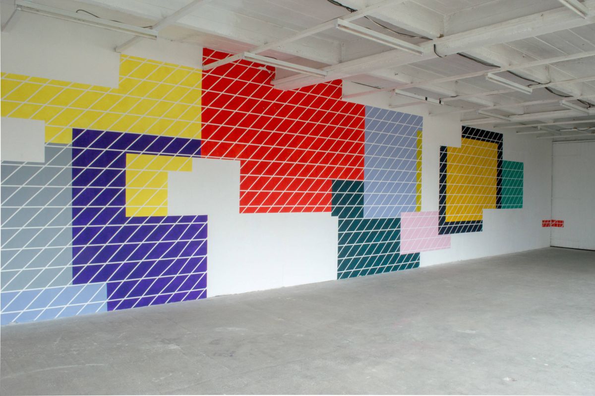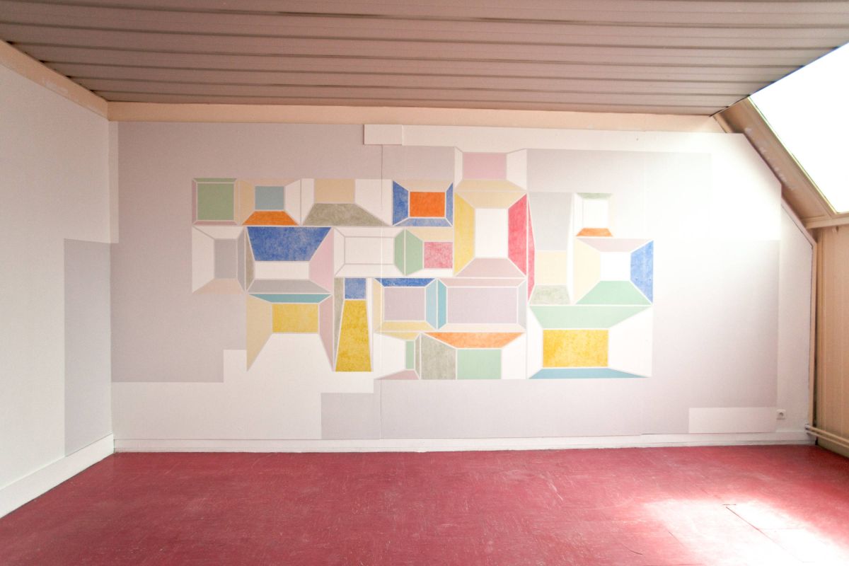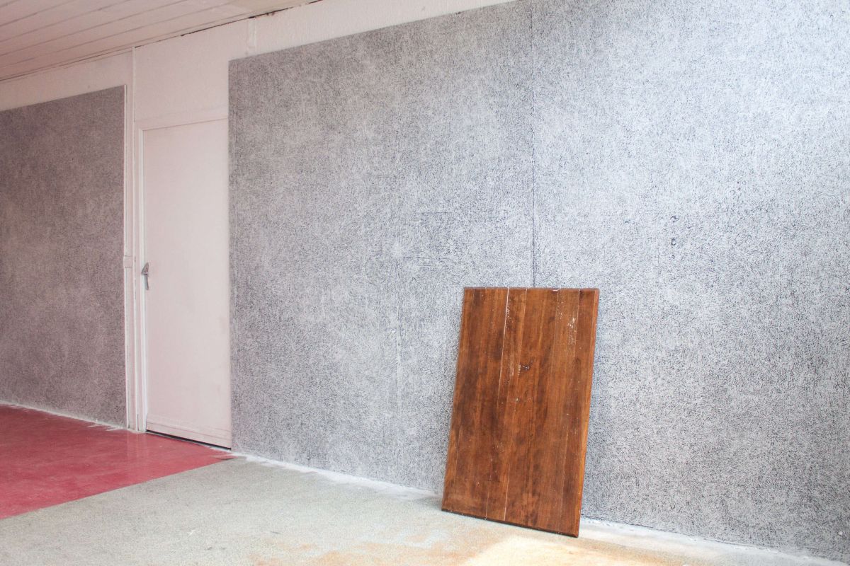 Acrylique sur mur, poussière de ponçage, 240 x 400 cm environ