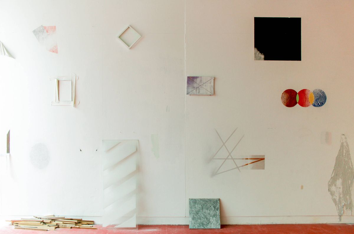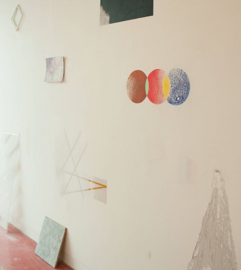 Acrylique sur mur, bois, adhésif, craie, plexiglass dimensions variables