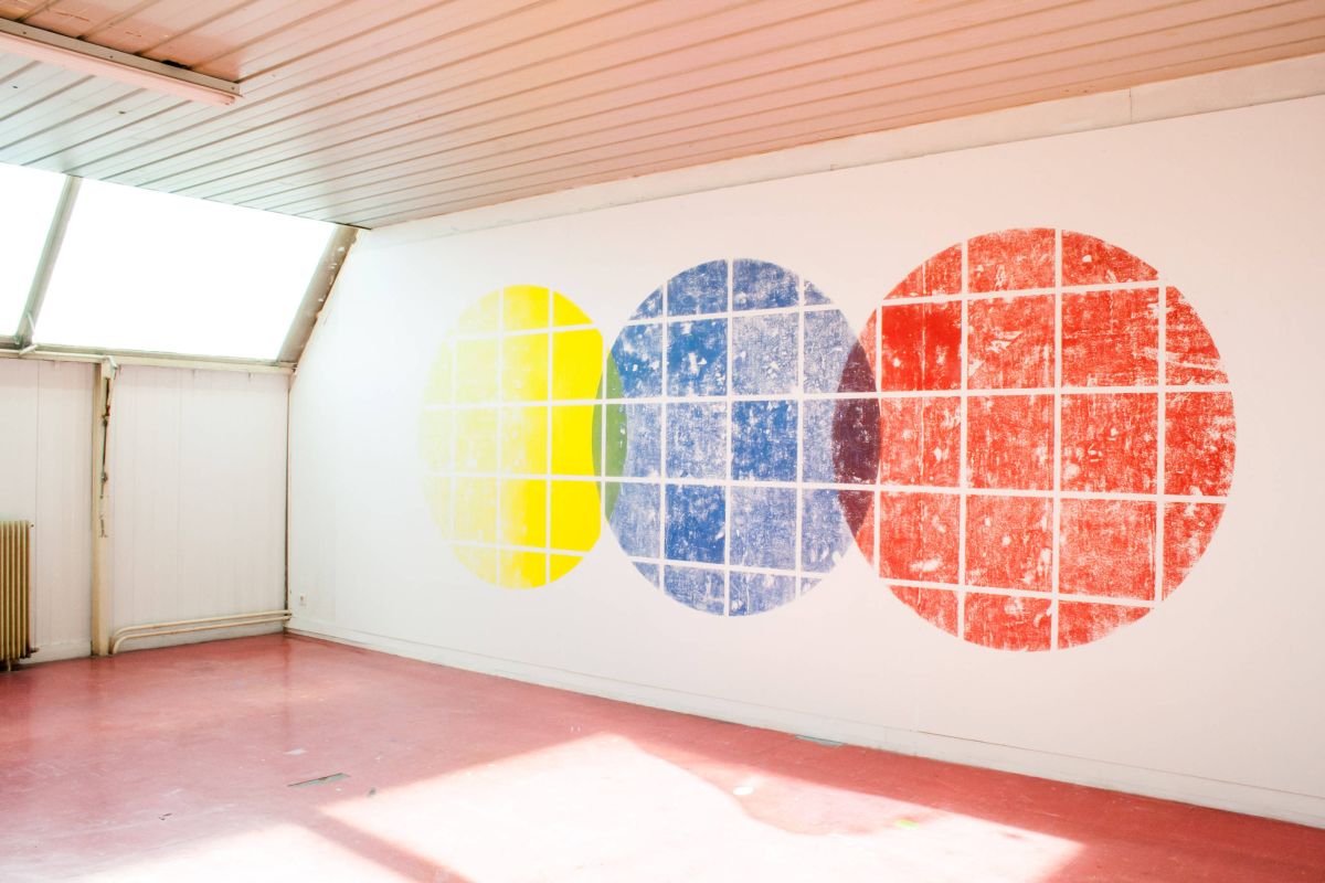 Acrylique sur mur, grattage, 180 cm de diamètre chaque