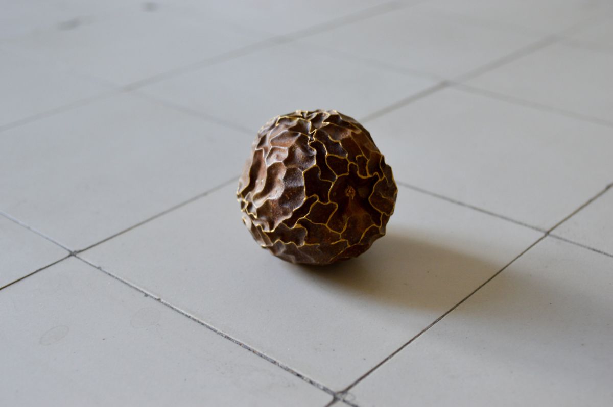 Fruit de la passion desséché, laque de dorure, dimensions variables