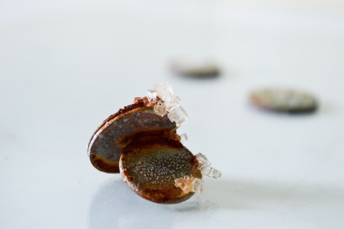 Pièces de monnaie rouge, cristaux de sel, dimensions variables