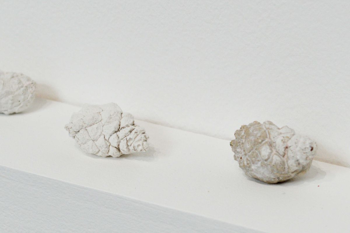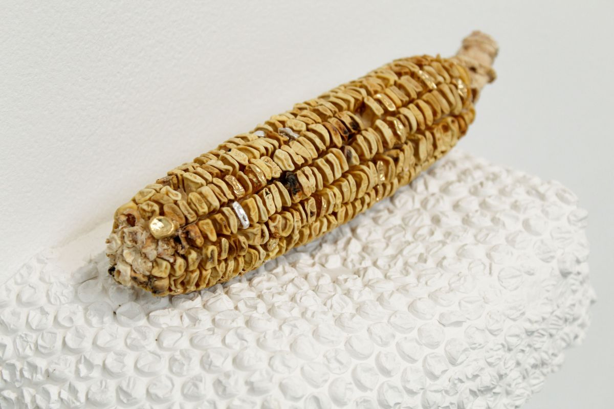Maïs desséché, feuille d'or et d'argent, plâtre. Dimensions variables.
