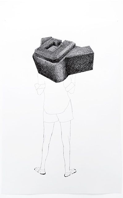 Bunkers features ten scale models of real bunkers transformed into « wearable » architecture. In Bunkers she fuses two discrete influences : the WWII bunkers of Atlantic coast, which she discovered by spending time in Brest, and the story of female Sudanese journalist arrested for wearing trousers, a sartorial choice deemed indecent for women. Designed and built by Organisation Todt, one of the third Reich”s civil and military engineering group active during WWII, the bunkers have since been transformed by the actions of nature and of man, gradually becoming integral components of coastal landscape. Based on scale models of ten of these blockhaus bunkers, Bunkers are examples of wearable architecture. They were created in Saint Hilaire Peyroux in the Corèze region, in collaboration with Brigitte Paillet (Mes chapeaux et moi), a fashion designer recipient of the « France’s best craftsperson » award and Jean-Marc Dufour, a sculptor.