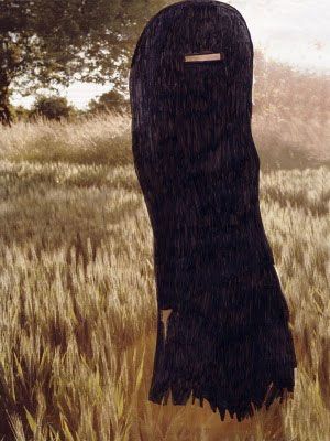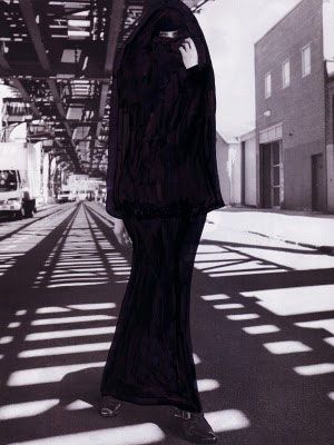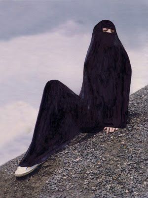These drawings were made using felt-tip pens and drawn directly onto images taken from fashion magazines. Then they were digitalized and printed on paper. They render visible the loss of the identity of the woman, both that of the model in the fashion shot and that of the woman wearing the burka. These black forms erase the body in the photograph, cancelling it out to create monstrous forms.