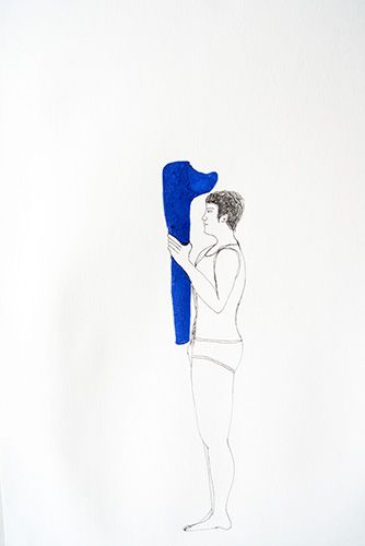 I molded pieces of “generic” bodies from standard models of women and men. These objects, made of paper mache are going to be “dressed” completely in fabric, so that they look like pieces of garment. To make them, I worked with the costume designer Christine Hascouët.