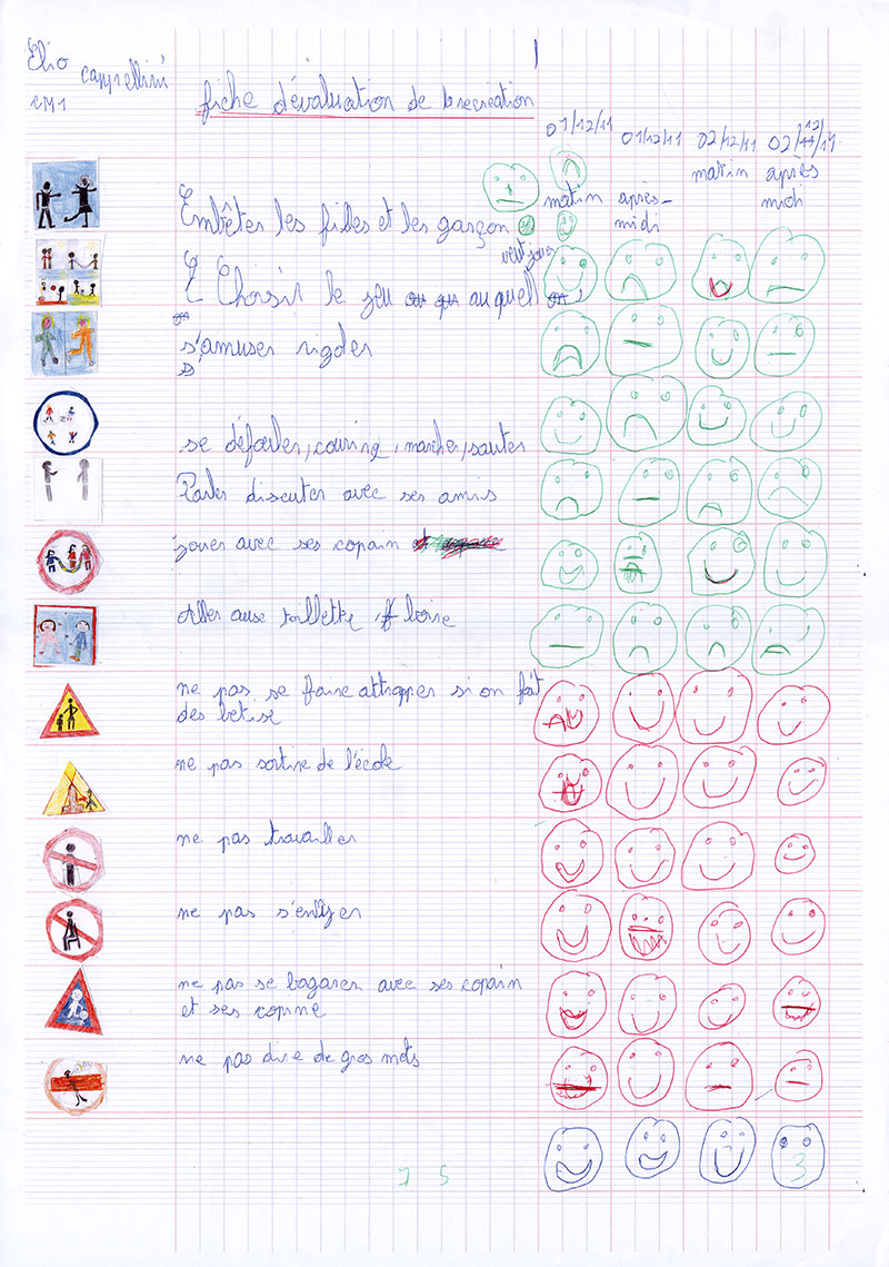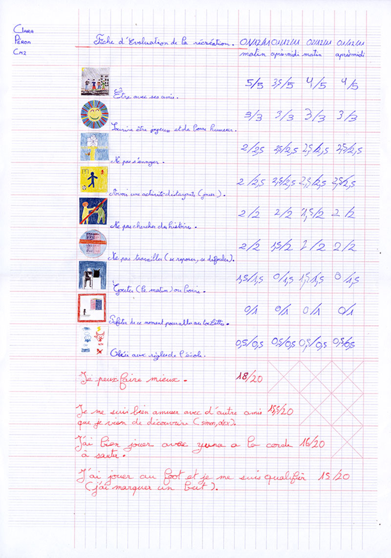 Fiches d’évaluation de la récré