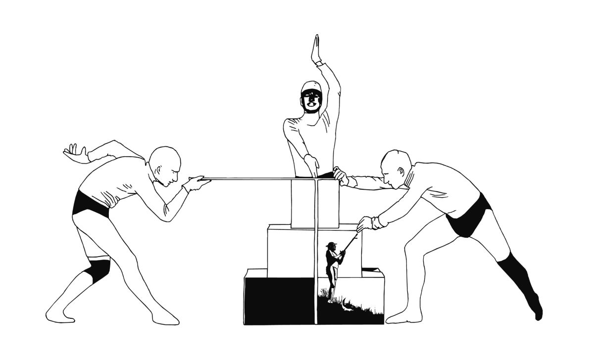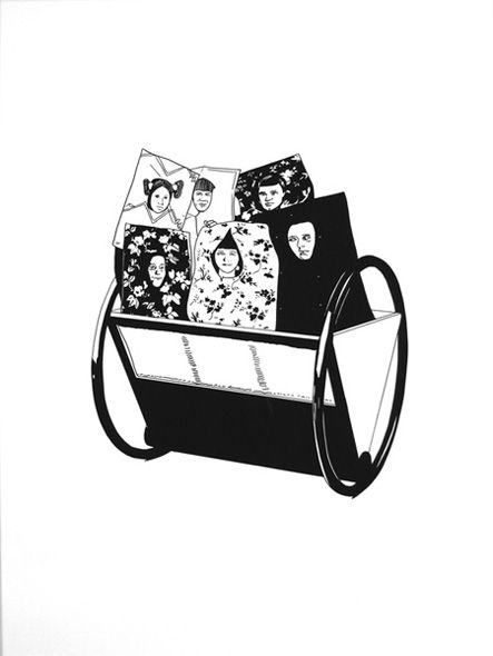 Installation de cinq mannequins en résine, couvertures militaires, socle, 370 x 246 x 487 cm. Vue de l’exposition Bauhaus : Virginie Barré, Parker’s Box Gallery, Brooklyn, New-York, États-Unis, 2007.