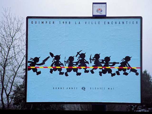 Alain Le Quernec : Comment ne pas résister à un jeu de mots facile, c’est ma faiblesse. Mais il correspond bien à la situation, annoncer avec humour qu’avec les travaux de voirie à venir, les Quimpérois ne seront pas à la fête tous les jours… Hahi, haho, nous allons au boulot ! Les petits bretons laborieux ont remplacé les sept nains de Walt Disney. Ils ont eu beaucoup de succès, ce type de dessin n’étant pourtant pas ce qui me passionne le plus…