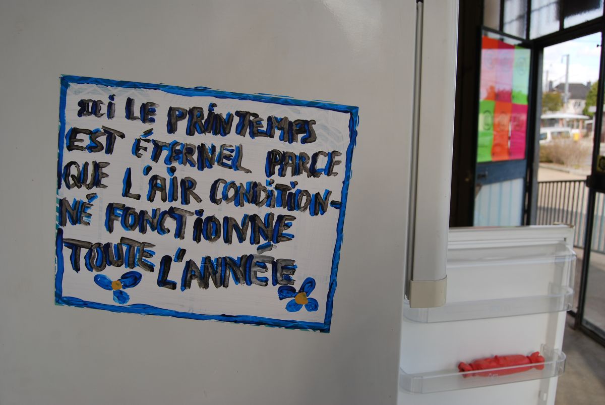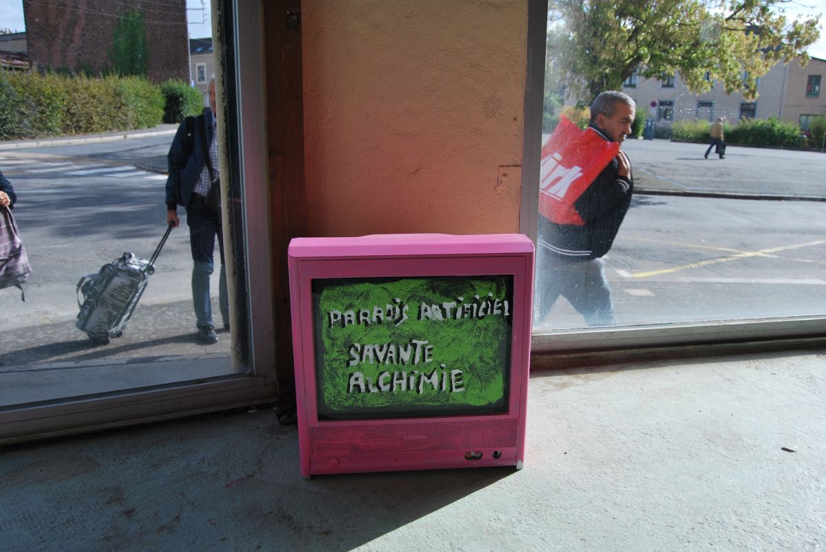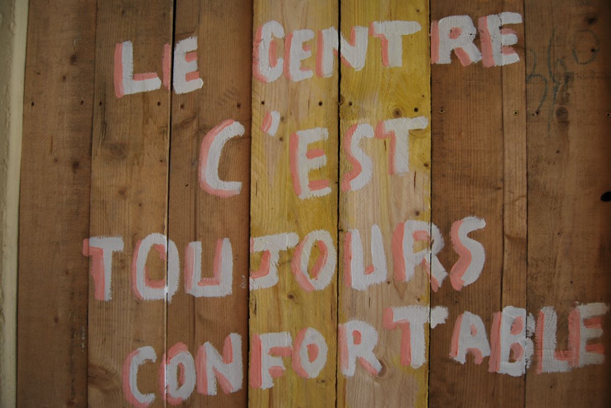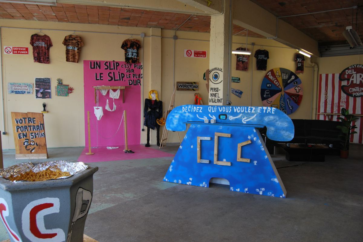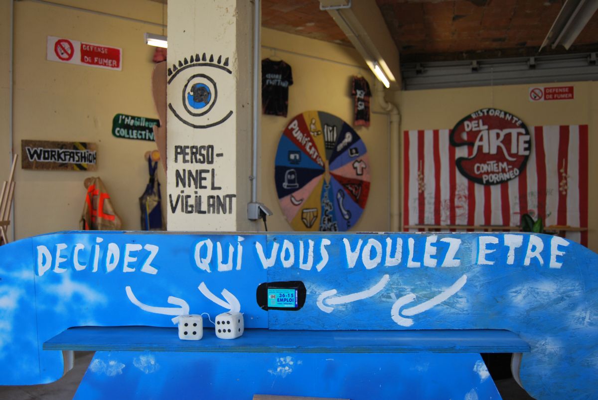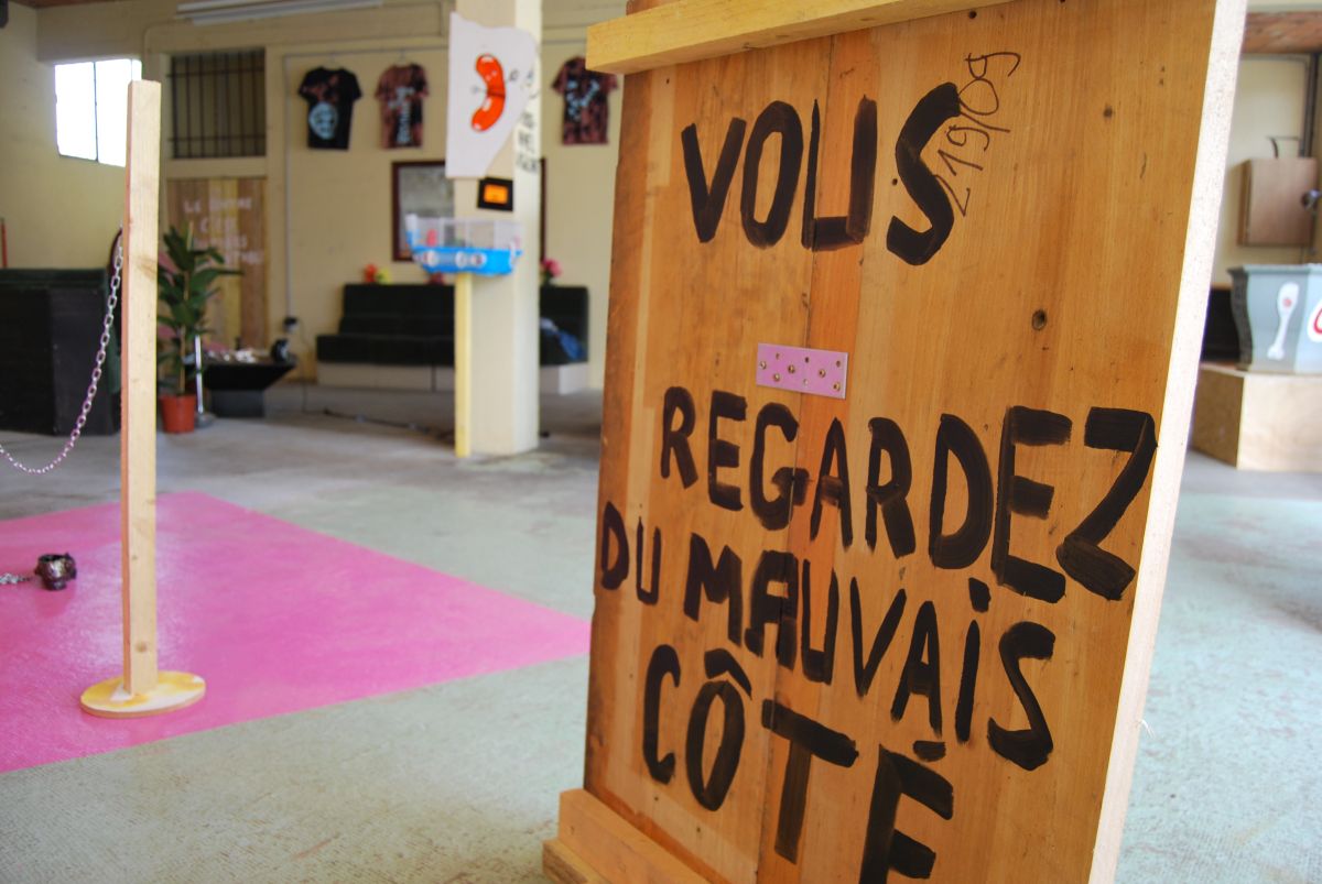 Un espace de bonheur collectif bien qu’au bord de la faillite. Mes sculptures avec leurs aspects bricolés, improvisés ne pourront que teinter le centre d’activités d’une odeur de contrefaçon, où malgré une assurance qualité, le goût des objets est à rebours de l’énoncé, presque contre-moderne…