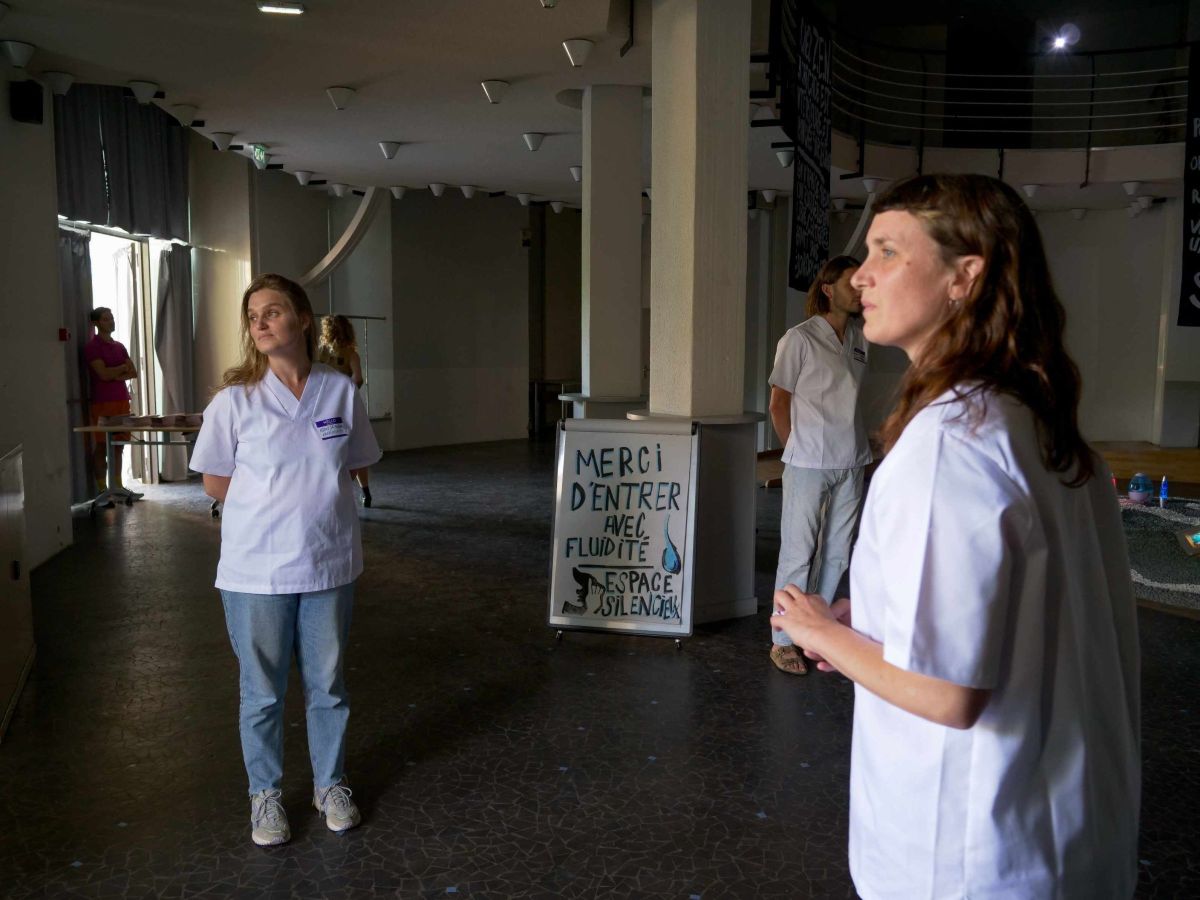 Des agents de transition émotionnelle vous accueillent à voix basse, chuchotant leurs indications comme s’ils vous confiaient un secret. Ils vous remettent des cartes de communication, qui déclenche votre accès au Protocole de transition vers l’état de Méditation Productive.