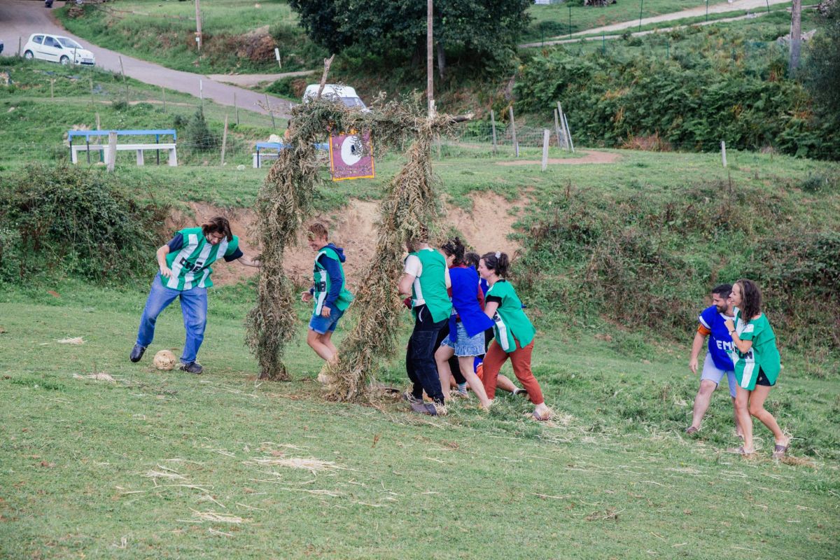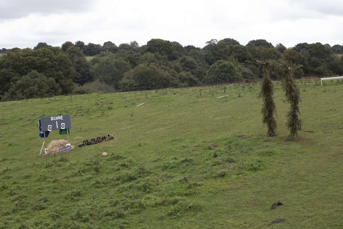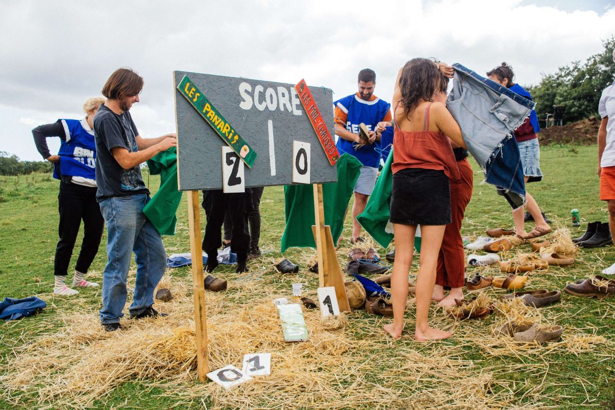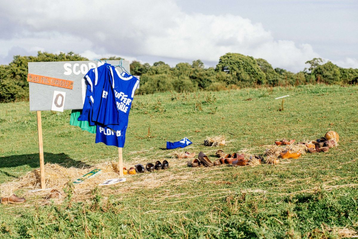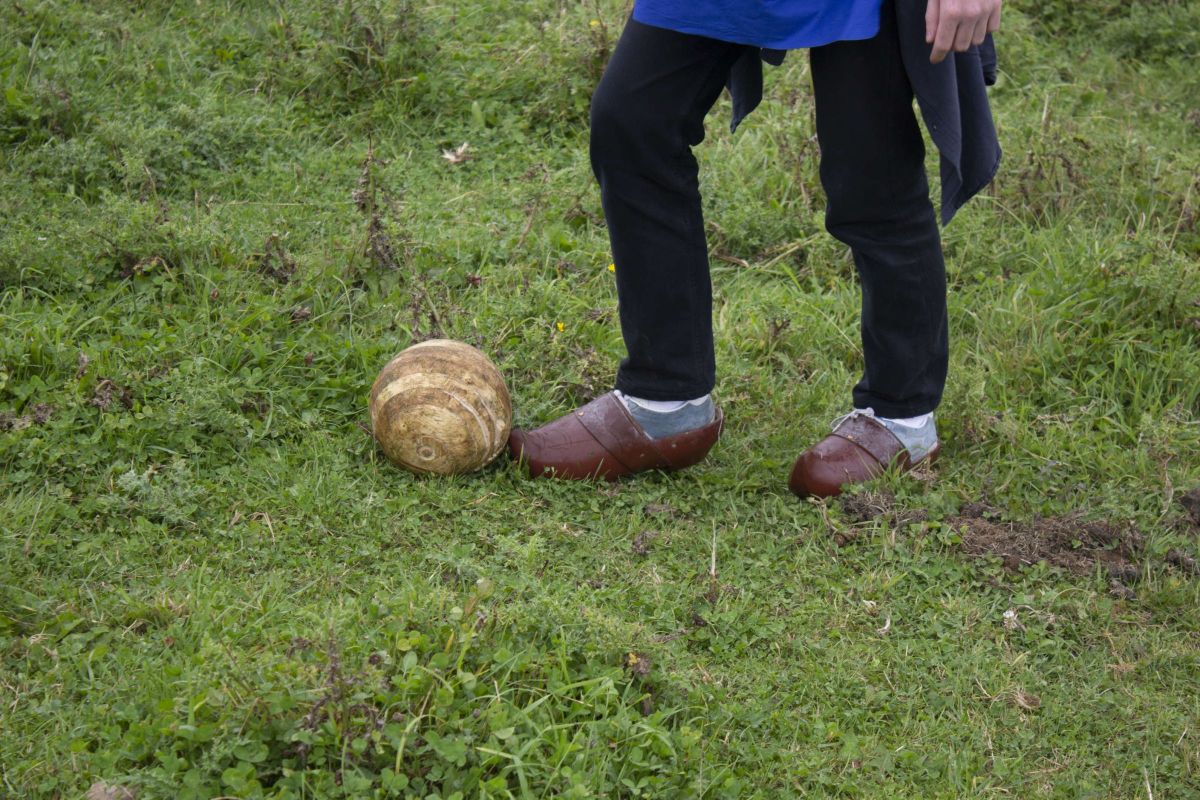Gloire Boueuse est un tournoi de foot, où les joueurs sont chaussés de sabots de bois et jouent avec un ballon de bois sur un terrain en pente. Les équipes sont constituées sur le tas avec le nombre de joueurs volontaires. Le terrain n’est pas délimité et ne possède qu’un but, les deux équipes marquent dans le même but. Deux buts consécutifs et c’est gagné. Il n’y a pas d’autres règles.