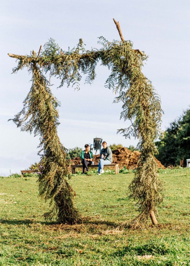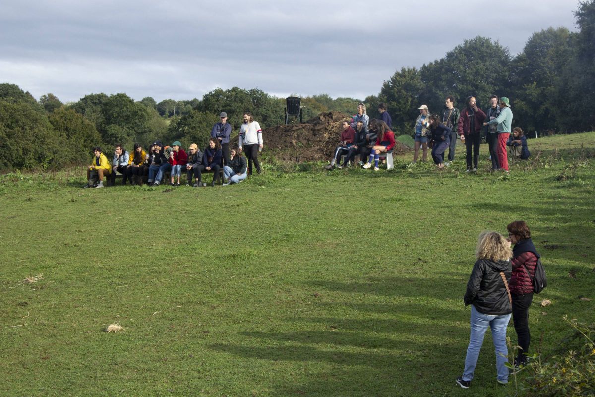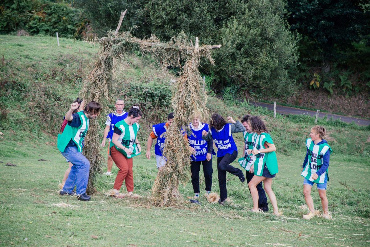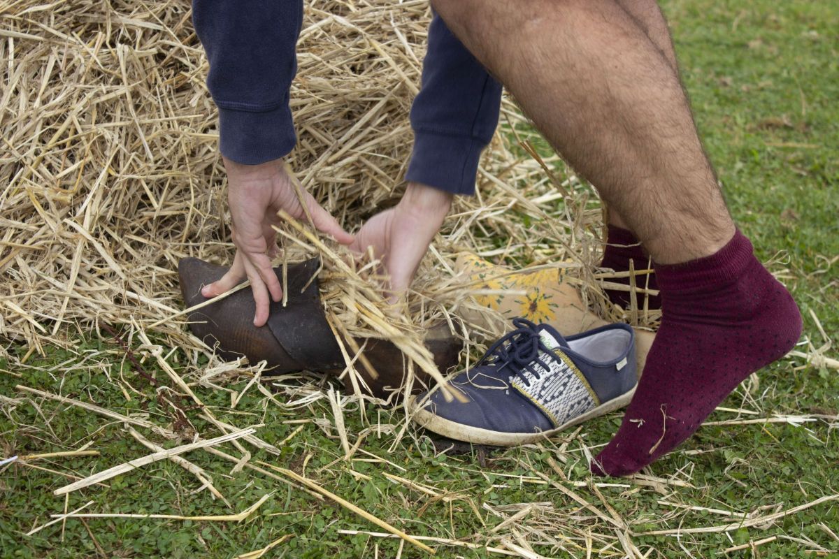 Performance dans le cadre du Festival SETUBois de récupération, branches, fougères, peinture, tissus, paille, sabots
