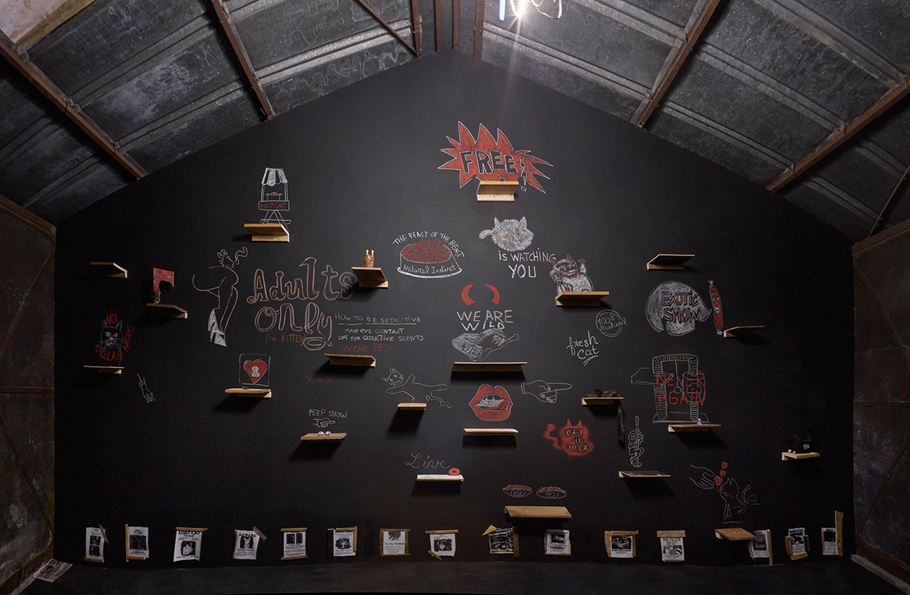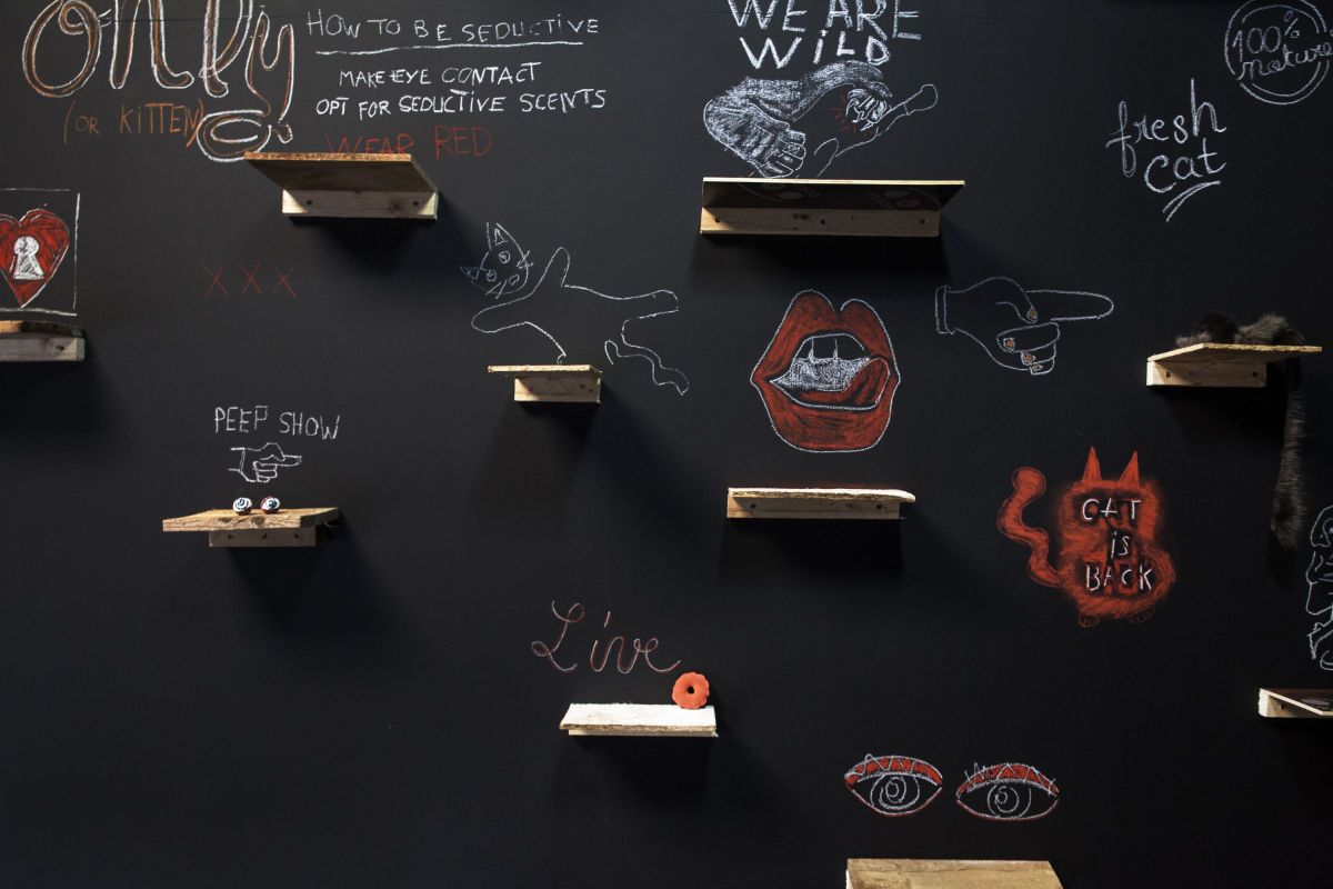 Inside the Chocolat space, you will find a seductive Caress Bar in which cats and humans engage in a mix-and-match role play of waiters and customers, providing mutual services. Beware though, this is not your regular cuteness-overloaded cat-café! Its slightly gloomy, cheap and suburban feeling make it all the more appealing to both humans and felines. So wait your turn and enjoy the enigmatic fluffiness !
