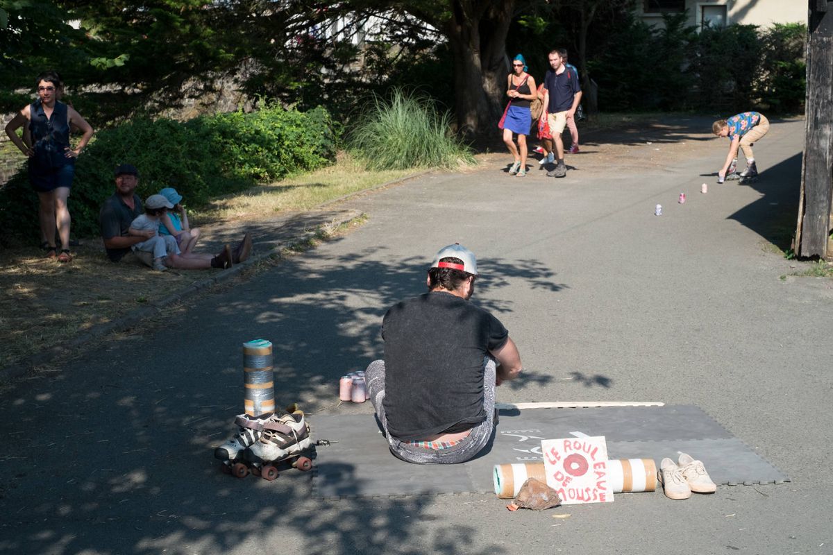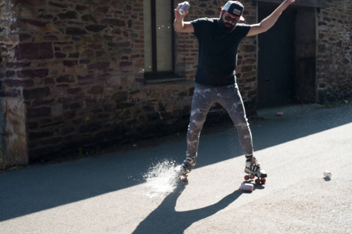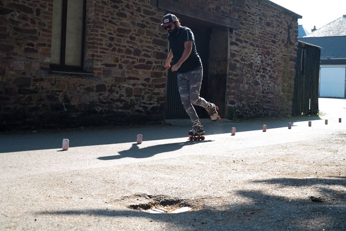 Il faut d’abord s’imaginer slalomer entre des canettes de bière peinturlurées en s’efforçant de ne pas les dégommer. Un parcours du combattant à roulettes qui, par quelques légères pressions préalablement prodiguées, prend des airs de promenade de santé.