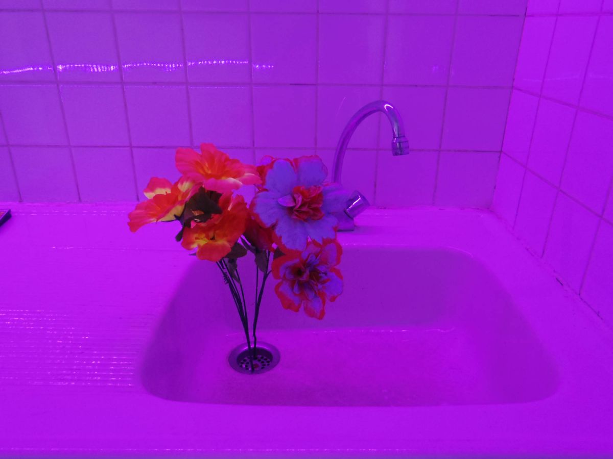 Maintenant que vous avez trouvé votre centre de gravité, dirigez-vous au fond de l’espace, dans ce cocon baigné de lumière rose qui vous tend les bras.