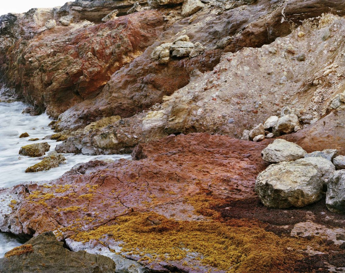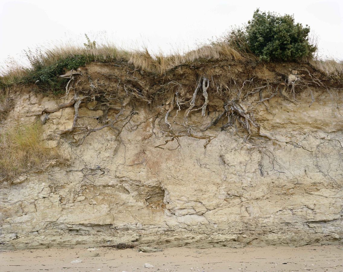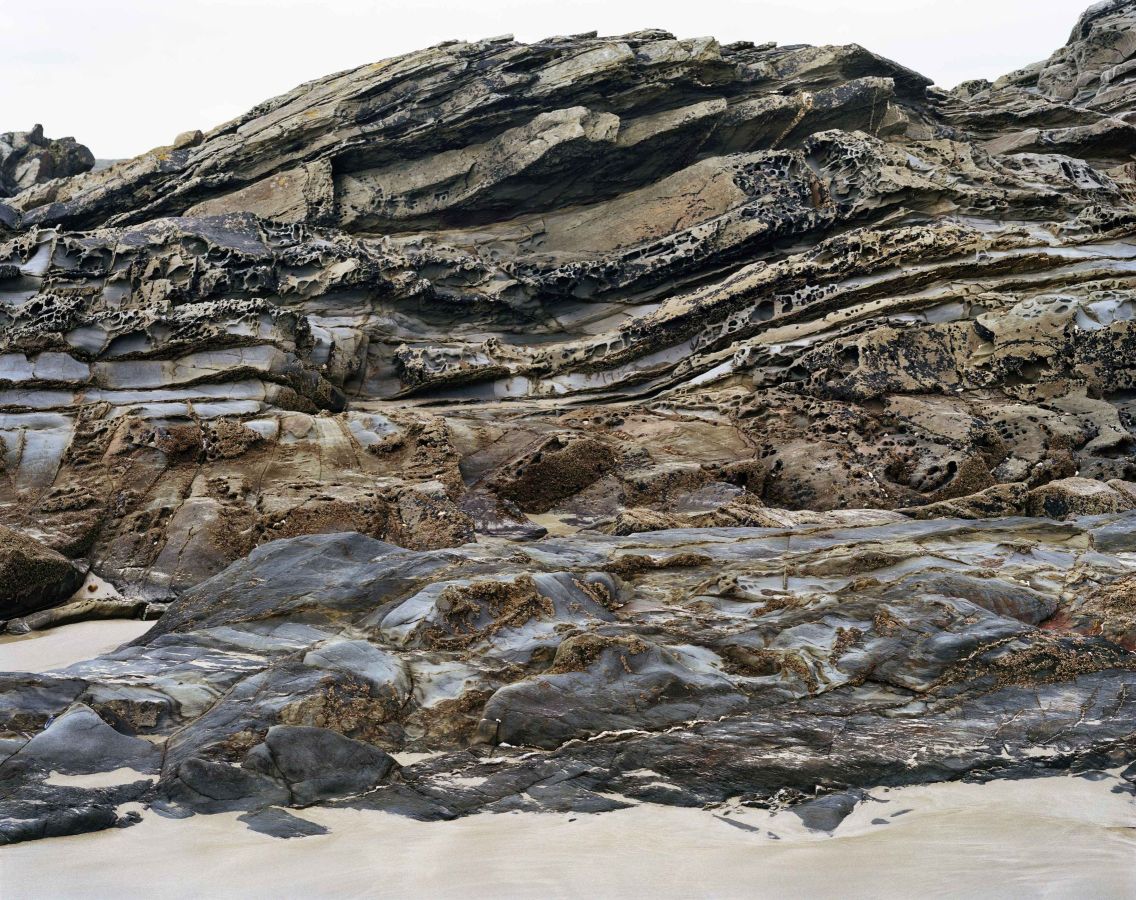 Grâce à cette résidence, l’artiste Aurore Bagarry poursuit ses recherches sur les relations entre l’eau et le paysage. Intitulé De la côte et réalisé à la chambre photographique, ce travail se situe au seuil de l’océan Atlantique et de la terre ferme. En se rendant particulièrement sensible aux matières, aux roches et aux traces de l’eau, l’artiste suit un jeu de piste, au rythme d’une lente dérive. Apparaissent les orbes chaotiques bretons, les aplanissements gradués des paysages de l’estuaire de la Loire et les délitements de la côte d’Argent. Émergent aussi du littoral des mémoires d’autres littoraux, plus ou moins troubles, entre la France hexagonale et les Antilles.