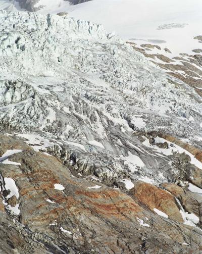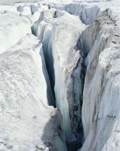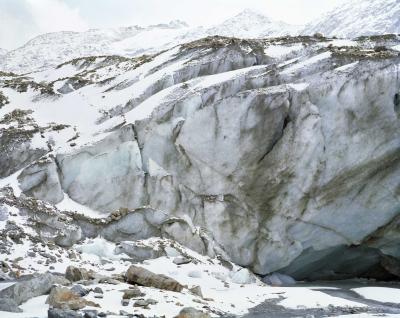 Rien de mieux que la marche et l’ascension des reliefs ne permet de reposer la définition de la photographie elle-même : la quête lente d’un point de vue sur le monde. Ce monde, le glacier en est l’étrange messager - avec lui la noblesse des monuments rejoint aujourd’hui le charme des ruines. Résultat des changements du climat, il devient l’objet des métamorphoses plastiques de notre environnement.