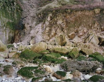Ce que l’on voit ici est d’une nature indéterminée et tient aussi bien du relevé topographique que de la photographie de paysage. Très peu de ciel, voire pas du tout dans ces images qu’il est quasi impossible de situer si l’on n’a pas repéré sur une carte l’endroit où elles ont été prises. Que l’on soit en France ou de l’autre côté de la Manche, rien ne permet de le comprendre vraiment.