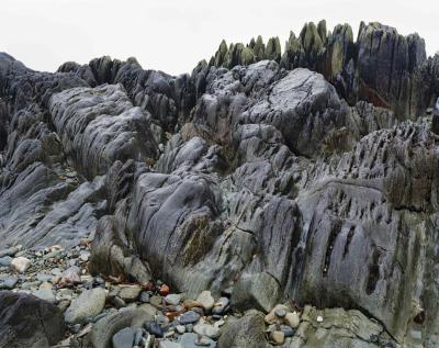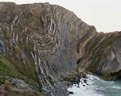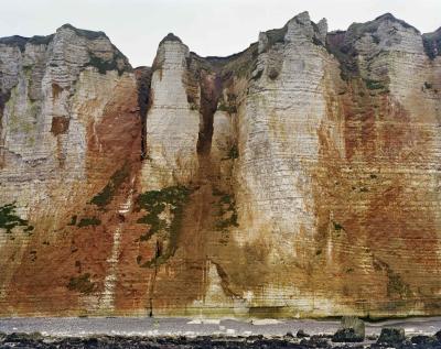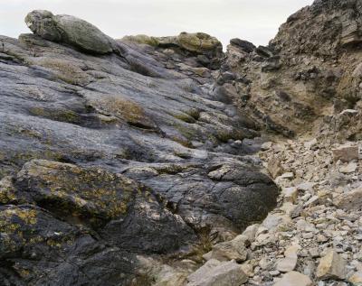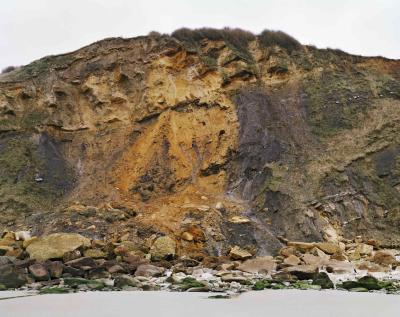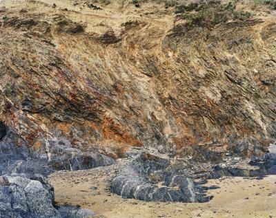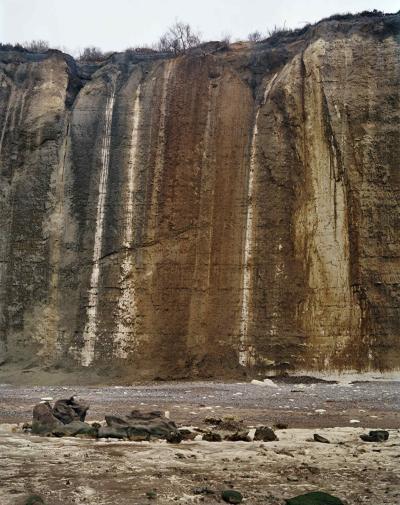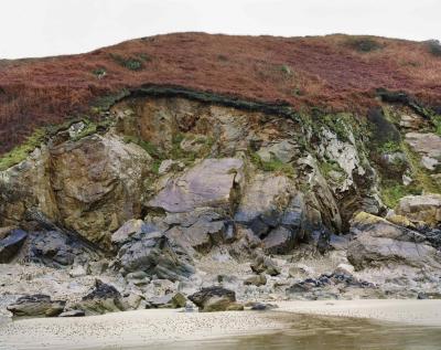 En allant, du côté français, de Calais à Brest et en passant par Varengeville sur Mer, la pointe du Hoc, le cap Levi dans le Cotentin et nombre de bourgades du Finistère et des Côtes d’Armor, Aurore Bagarry a photographié un paysage « à bout portant », pour employer une expression que peut justifier la notion de tir photographique, mais qui dit bien la sensation de brutale mise en présence ressentie lorsque l’on regarde ces images. En Angleterre, sur l’autre rive de la Manche, de la même façon, l’artiste a symétriquement parcouru la côte vers l’ouest en partant d’Eastbourne jusqu’au cap Lizard en Cornouailles, pour, parvenue à l’extrémité de la péninsule, revenir vers Maer Cliff près de Bude, au nord ouest du Dartmoor National Park, face au pays de Galles.