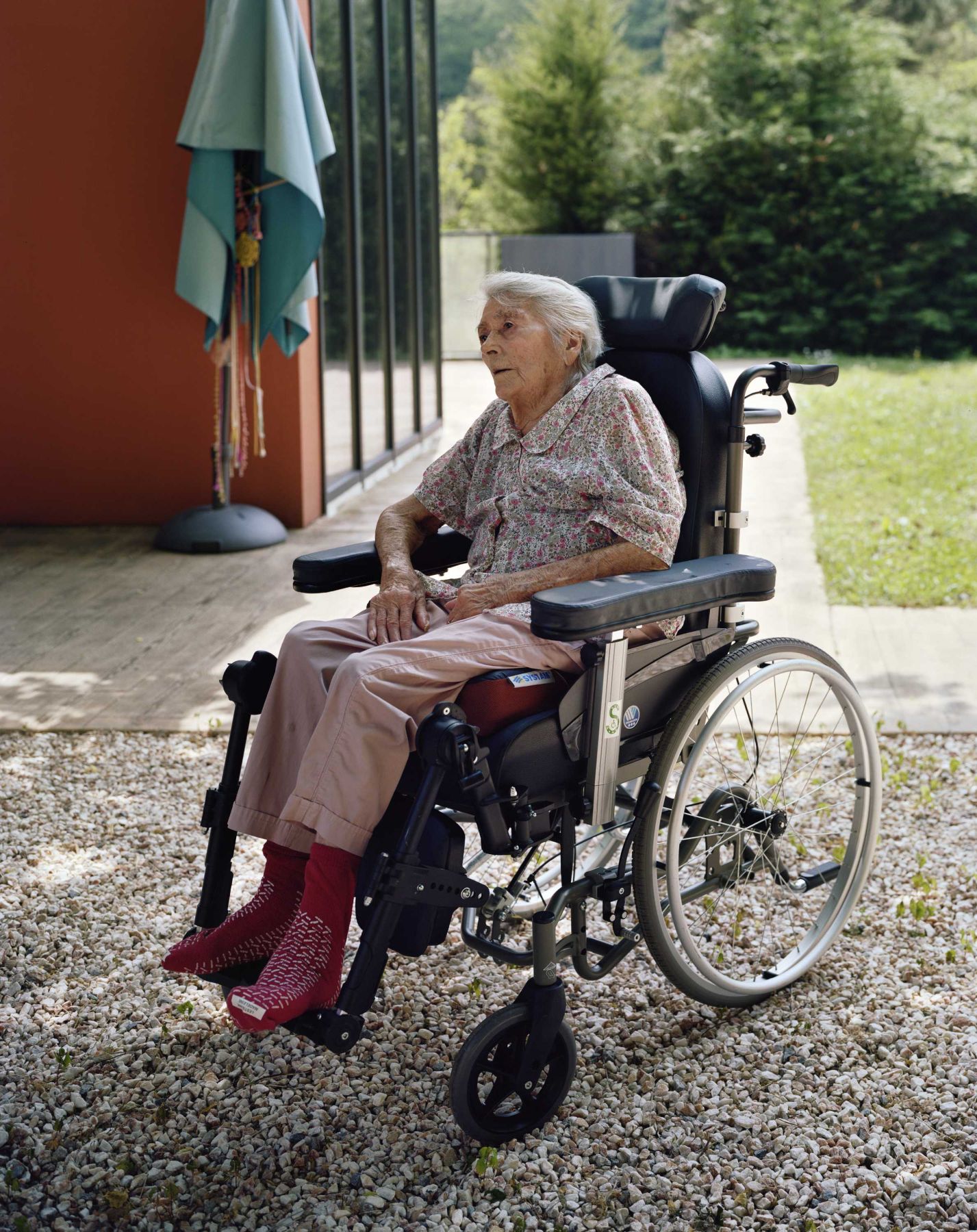 Selon Simone de Beauvoir, la vieillesse est le moment du « jamais plus » : « Jamais plus je ne gravirai cette montagne, jamais plus je ne verrai telle ou telle chose… ». Quand le corps ne suit plus émergent des questions philosophiques : pourquoi rester en vie quand on est vieux aujourd’hui ? Pourquoi existe-t-on ? Pour ce sujet, Le Voyage immobile, je me suis installée pendant quelques mois dans un village des Pyrénées-Orientales, Prats-de-Mollo, situé sous le dernier col conquis par Franco pendant la guerre d’Espagne, le col d’Ares. Des souvenirs de la Retirada de 1939, de l’exode rural entraîné par de grandes inondations et de la nostalgie d’un lieu de vie quitté pour vivre en Ehpad est apparue une série de portraits singuliers. Cette galerie de portraits, réalisée à la chambre 4x5inch, est mise en relation avec des paysages et accompagnée d’entretiens libres. Le mot retraite se déplie lentement, comme écart, isolement, séparation, repli, exil, exode, Retirada, asile, cachette, refuge et abri.