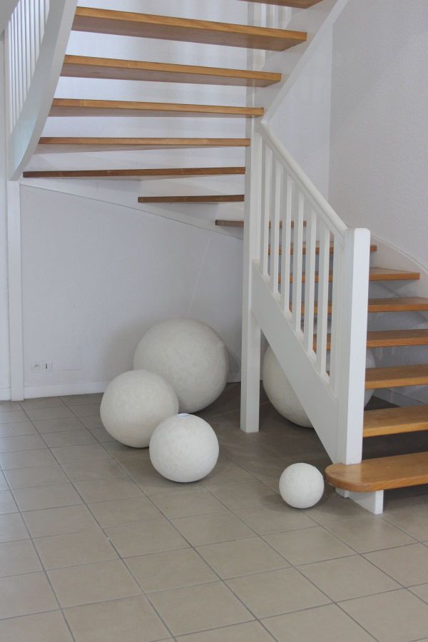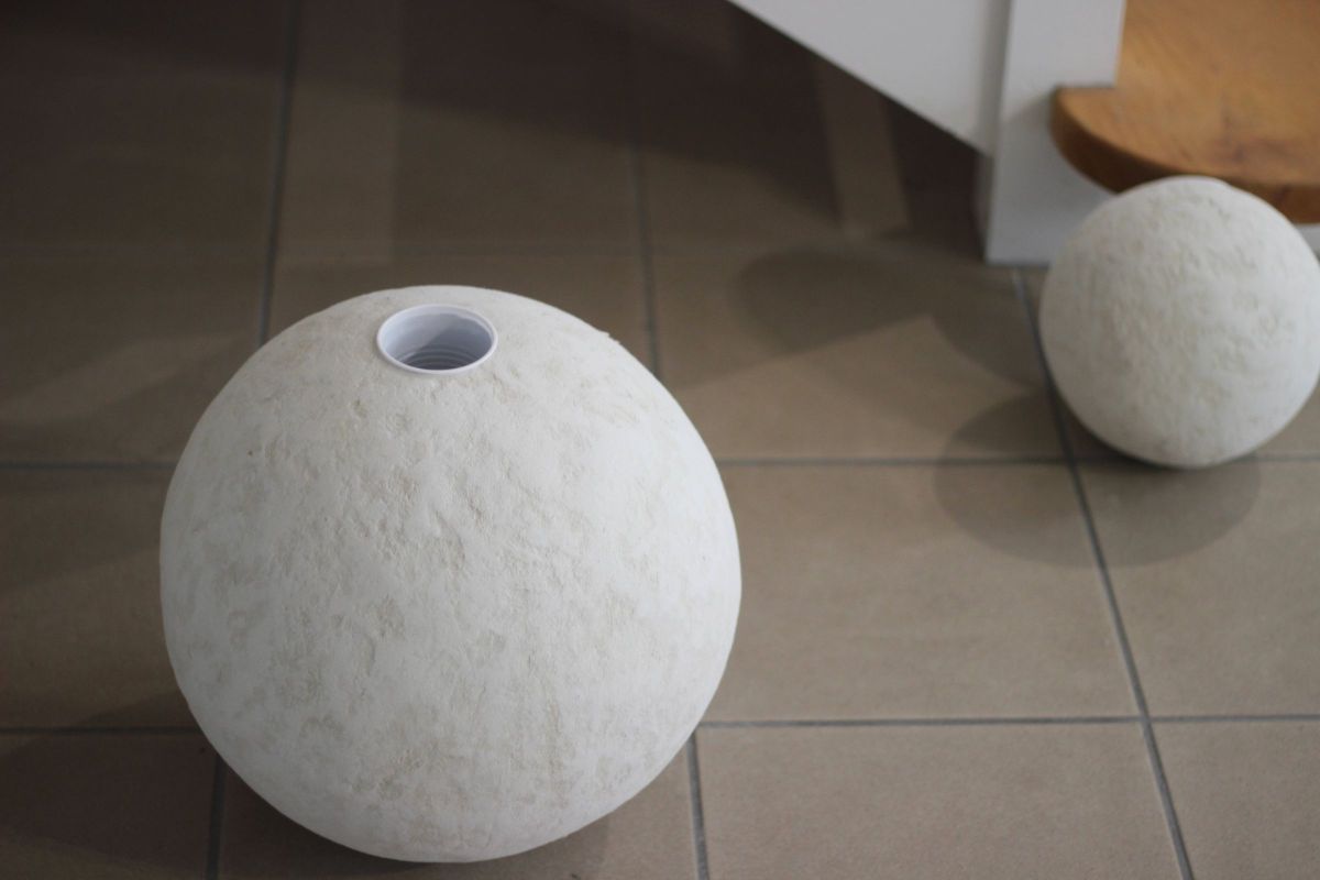 Pâte à bois, papier et gobelet. 70 cm ø , 50 cm ø, 39 cm ø, 30 cm ø, 19 cm ø