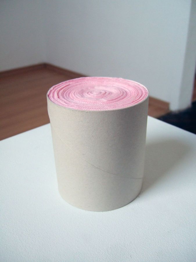 Carton et papier toilette, 8,5 x 10 x 10 cm.