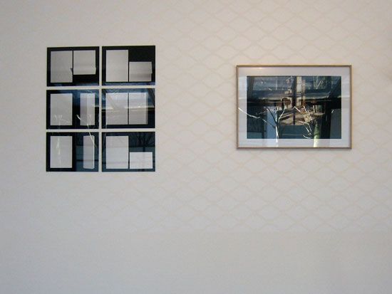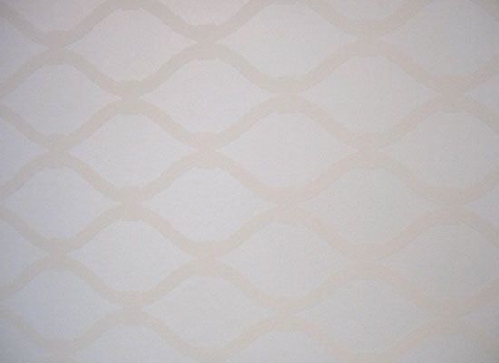 Les ouvertures architecturales présentes dans l’espace d’exposition sont retranscrites par des aplats de peinture blanche satinée sur une cimaise blanche mate. Selon le lieu dans laquelle elle est réalisée, cette peinture murale dessine les motifs répétitifs d’un rideau métallique, des carreaux d’une fenêtre ou des empreintes de banchage. Fantomatique, elle révèle des tensions paradoxales entre le report systématique des percées de lumière du jour et l’illusion ainsi créée. Empruntant à la peinture Pop le processus sériel et l’effet décoratif de représentation du réel, l’intervention s’apparente tout autant à une abstraction purement géométrique. S’infiltrant insidieusement en toile de fond d’expositions collectives, elle pose à la fois le doute sur sa véritable nature et sur le lien de cohabitation quelle entretient avec les oeuvres voisines. Presque indiscernable, la pièce créée le trouble dans une recréation plus que plausible de la réalité, celle d’un reflet dont la lumière du jour ne perturbe pourtant pas la fixité.