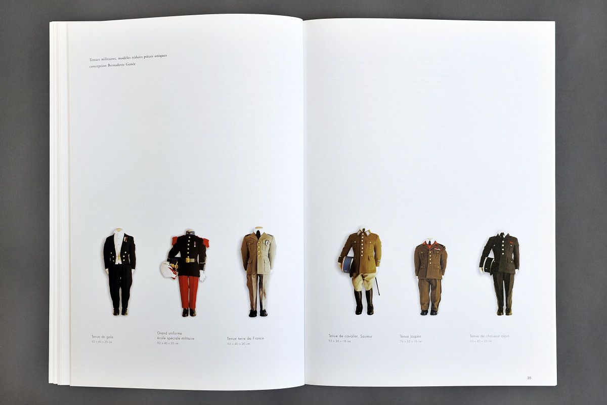 Les tenues présentées ici ont été réalisées par des maîtres tailleurs civils et militaires et des maîtres bottiers. Ces modèles réduits ont une échelle qui les démarquent ainsi de la réalité des pièces présentées dans le musée, comme du symbolisme gigantesque de la statue de la France de Bourdelle dont un exemplaire est situé entre le Palais de Tokyo et le Musée d’Art Moderne de la Ville de Paris ;
