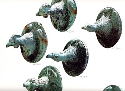 Vol de migrateurs, détails des gallinacées en bronze ornant les canons XVIIème de la cour des Invalides