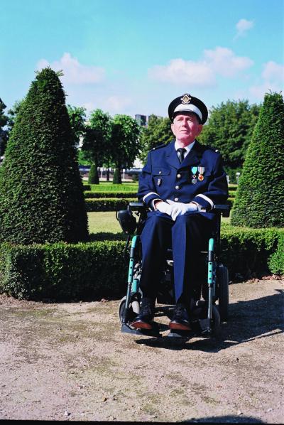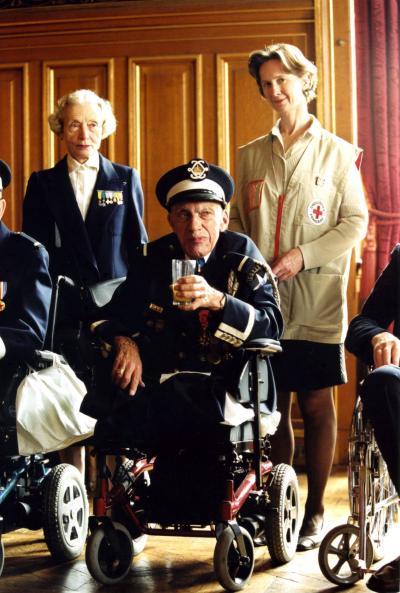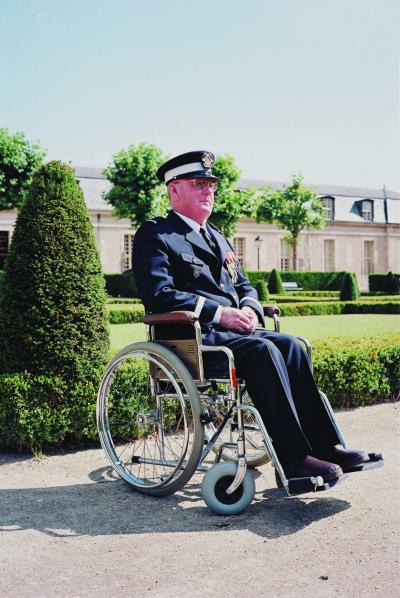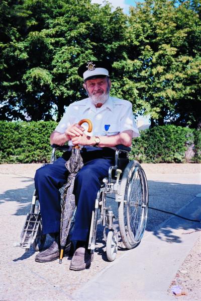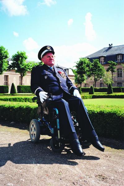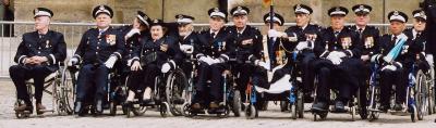 Bénévoles de l’ordre de Malte accompagnants des invalides pour le vernissage devant la vitrine du Parcours du combattant (CV légionnaires)