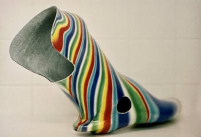 Dialogues, arrangement de portraits d’invalides de l’INI avec des armets de la collection du musée de l’armée et des grenades éclatées en céramique