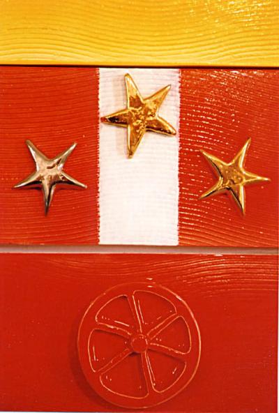 Jardin hongrois, détails des céramiques ornées de décorations militaires