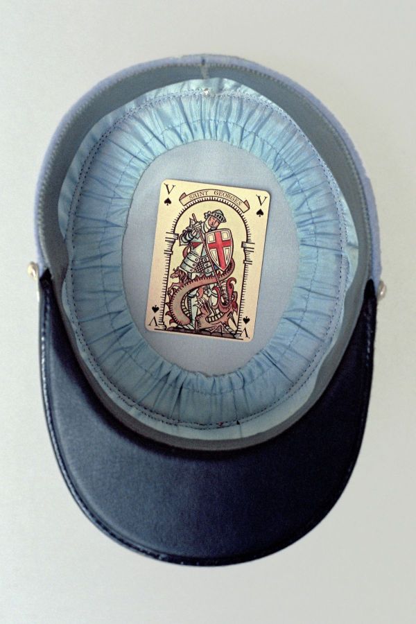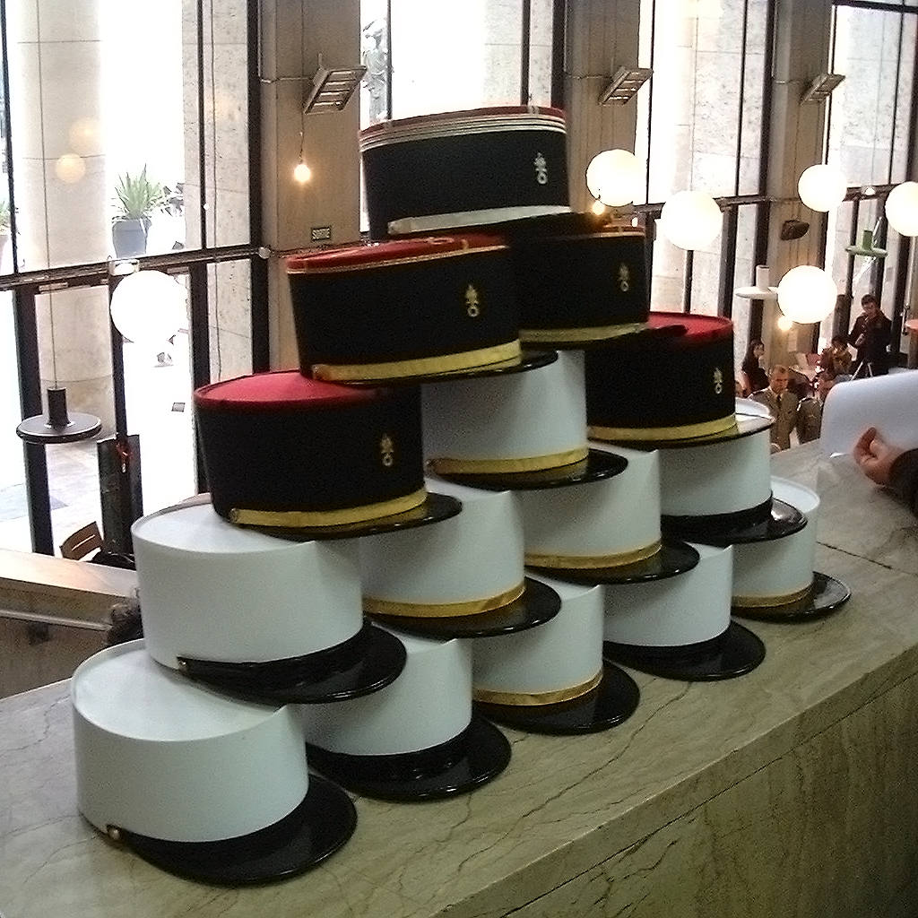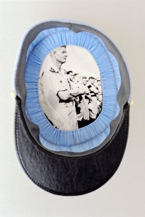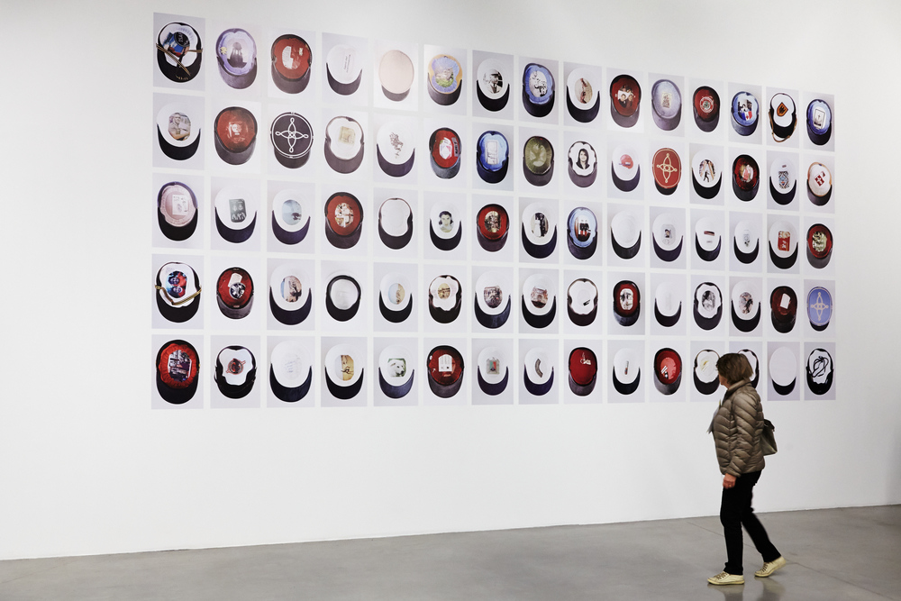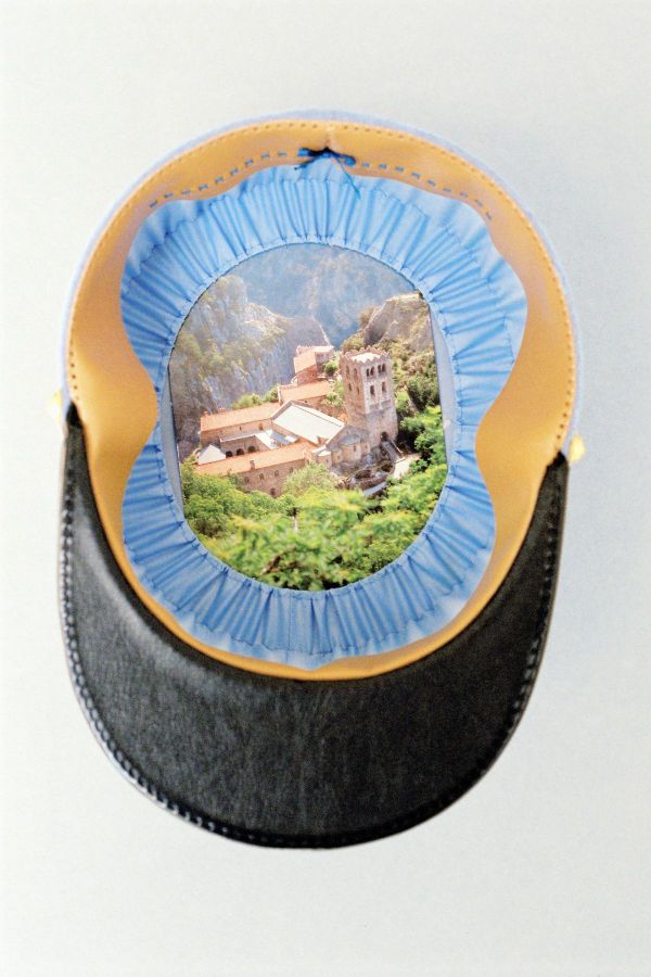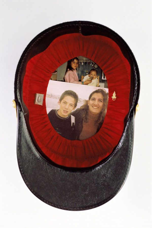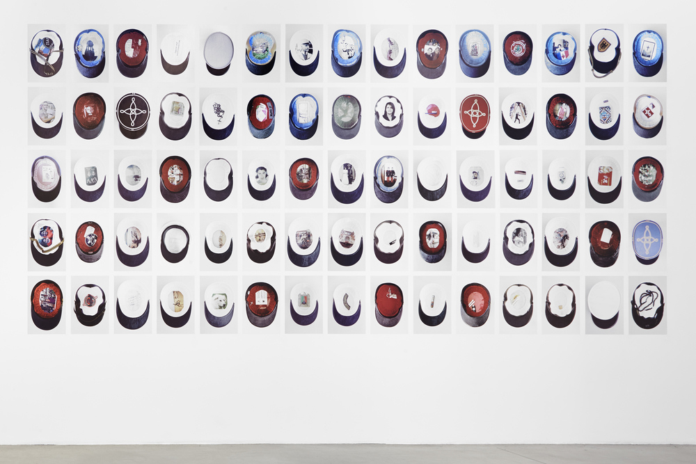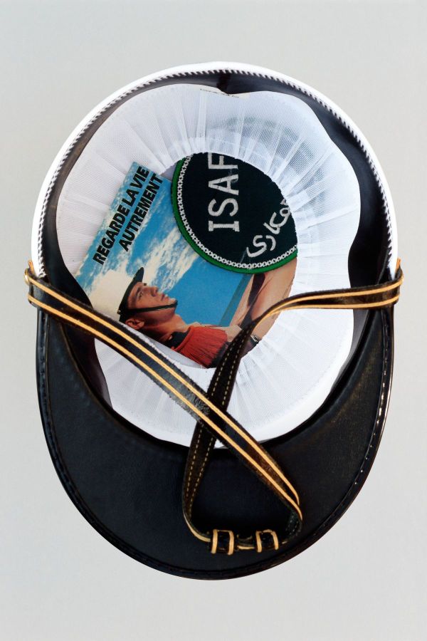 Dans un deuxième espace est présenté Couvre-chefs, un ensemble de soixante-dix photographies de képis retournés. Les effets personnels des militaires qui y sont cachés dévoilent leur intimité et l’envers de leurs relations entre identité personnelle et unité collective. L’arrangement d’images fait apparaître de petits théâtres intimes et personnels comme une pensée suspendue au-dessus de leurs têtes, un défilé intérieur.