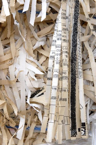 Au sol : Pilon/Loos, balles de papier, 45 x 45 x 90 cm, chaque
