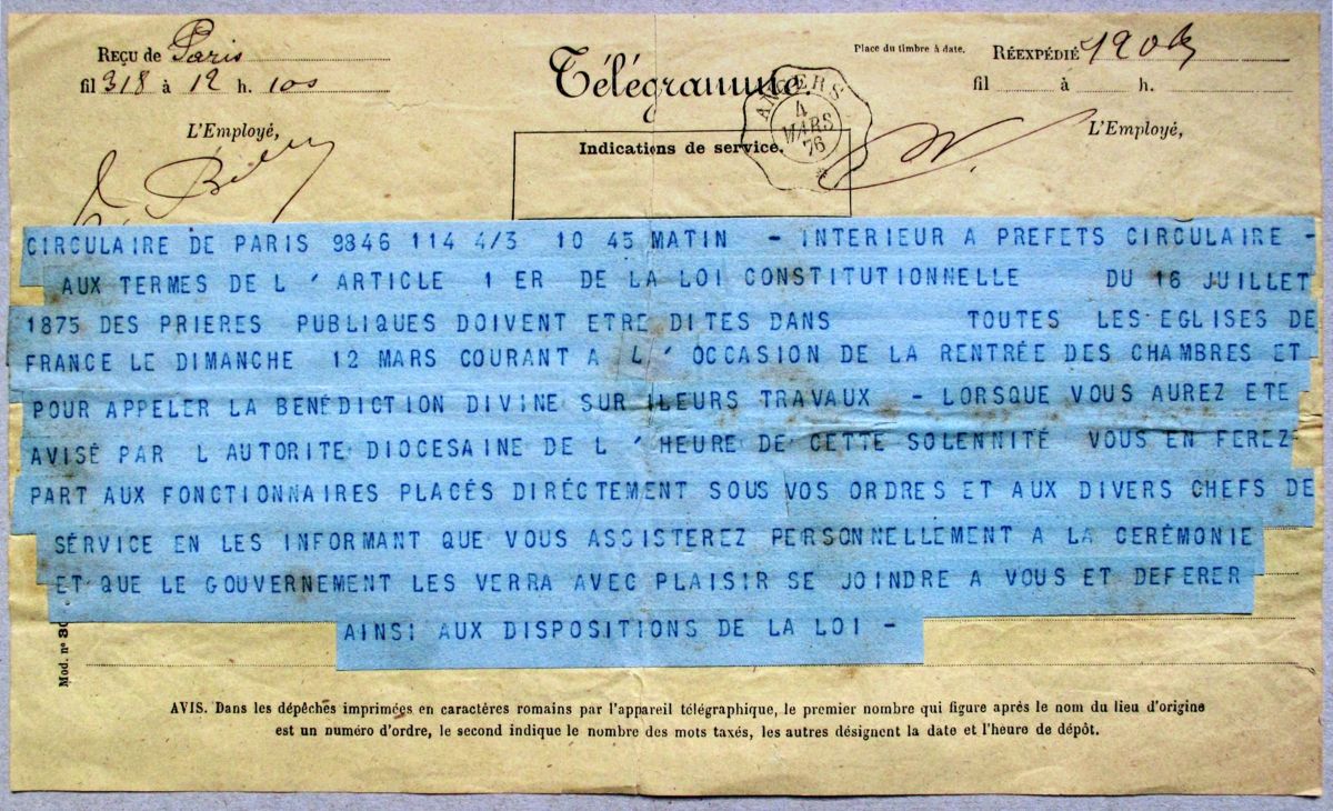 – Vue 1 : Circulaire pour la bénédiction divine des travaux à l’occasion de la rentrée parlementaire, fin XIX ème