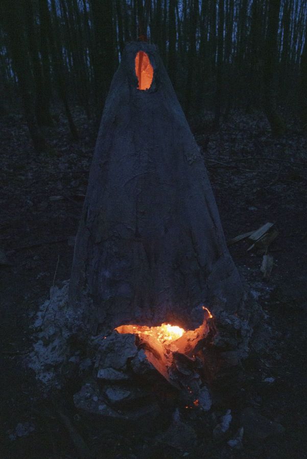 Atelier Vivant 2023-24, projet en partenariat avec Léa Müller, paysagiste, artiste et forestière, l’Agrocampus Rennes-Angers, l’Ensad Valence et La Criée. Rencontre avec Léa, teinture végétale, cuisson primitive dans un four papier.