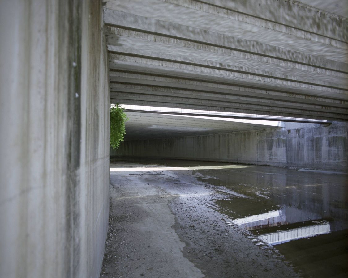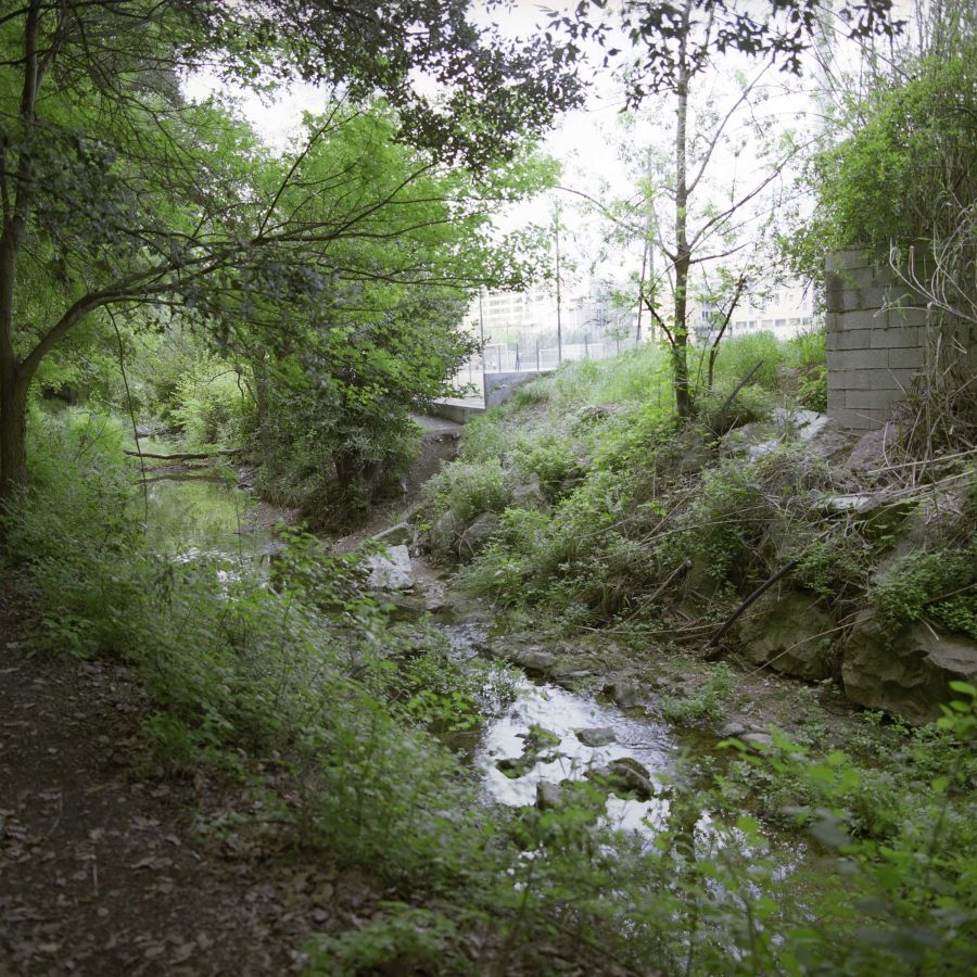 La commande publique devait avoir lieu le long d’un petit cours d’eau La Frayère dans les quartiers ouest de la ville de Cannes-la-Bocca, des quartiers périphériques, loin de l’image très balnéaire de la ville de Cannes. J’ai travaillé au moyen-format et je me suis attachée à documenter les paysages de l’eau mais aussi les lisières, les frontières ainsi que des portraits de ces habitant·es.
